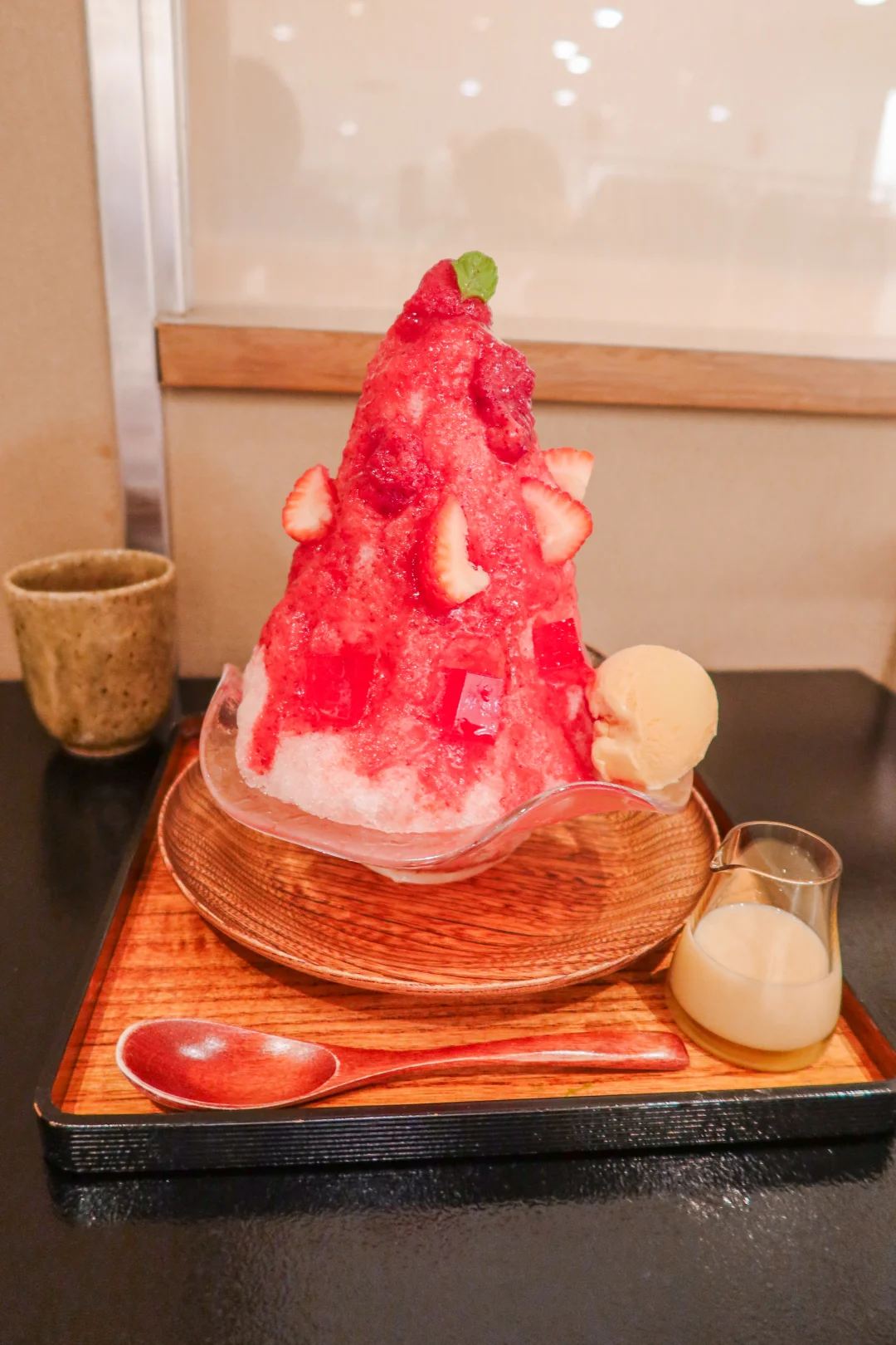 相比之下🍓草莓刨冰就显得普通了,唯一的亮点大概是边上的香草冰激凌球🍧,奶味很足却救不了平淡的刨冰~