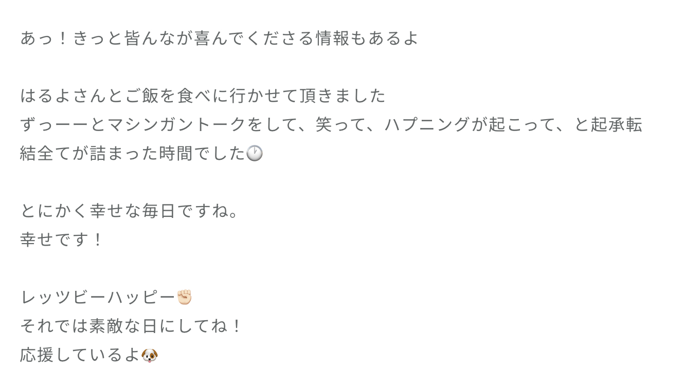竹内希来里「きらりんT細胞と笑窪が自分の取り柄です。最近は、ミート&グリートが始まりみなさんと近況報告をお話しし合う事ができて凄く嬉しいです!もう知ってる方も居ると思いますが、『チェンソーマン』の事ばかり考えて生活しています。映画も『毎日』観に行きたいって言葉に発してます。(1日1回みたいという意味) アニメもずっと家の中でつけています。歩いてる時も悪魔とデビルハンターが出てくるのではないかと考えてしまいます。」