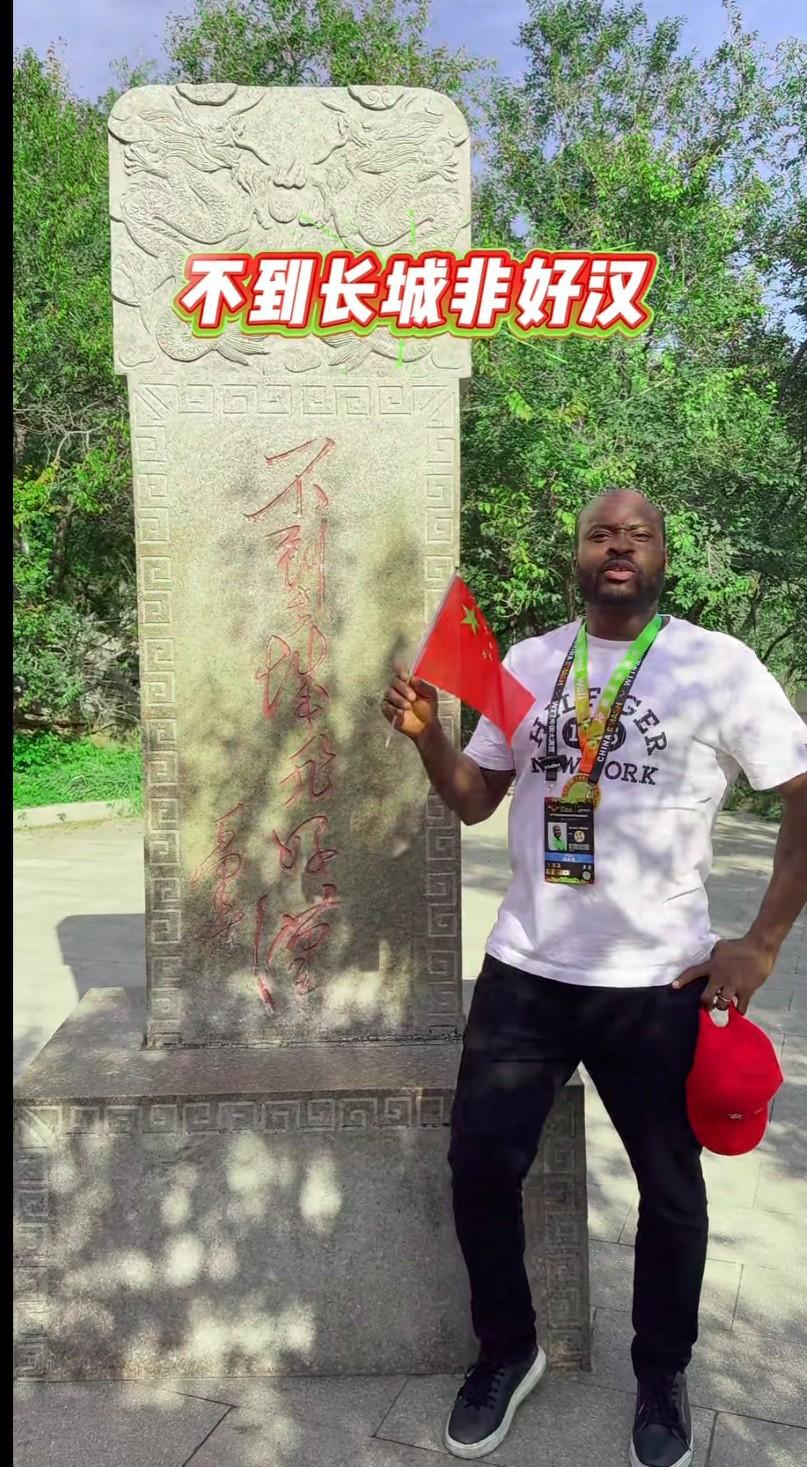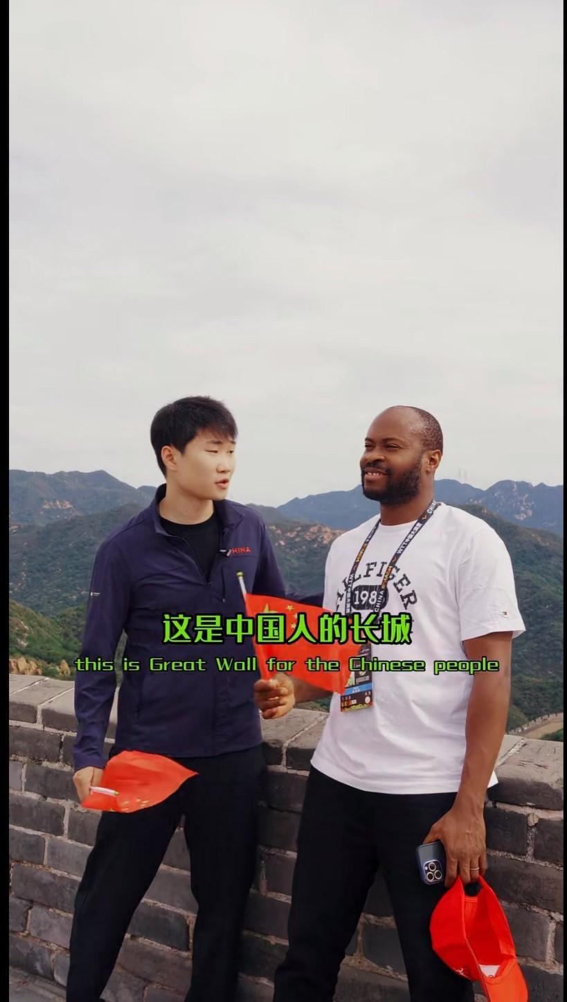 王开好样的哈尔滨小伙,阿鲁纳孤勇者,遇见你这回不孤勇了,非洲乒乓一哥阿鲁纳登长城,激动万分,高呼长城我来了,中国,我爱你!