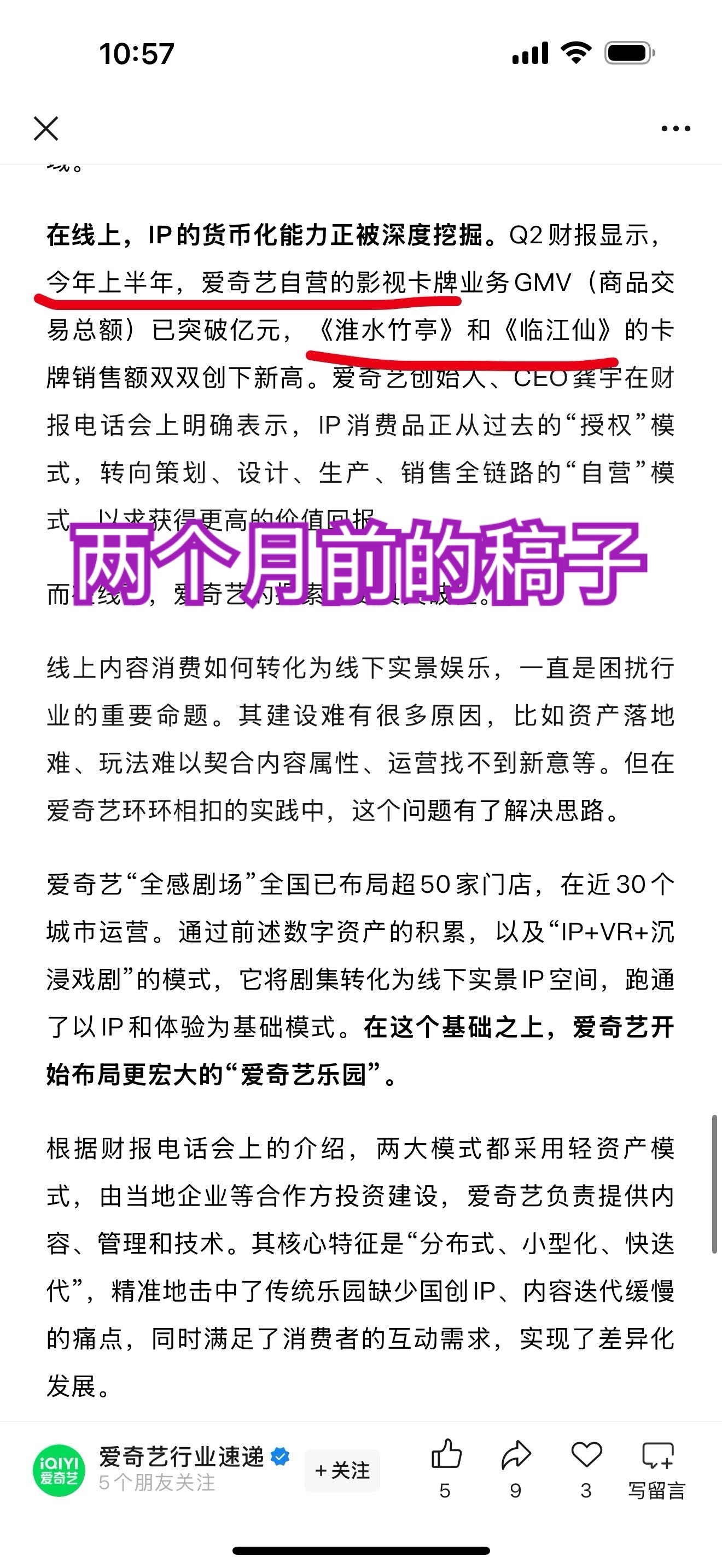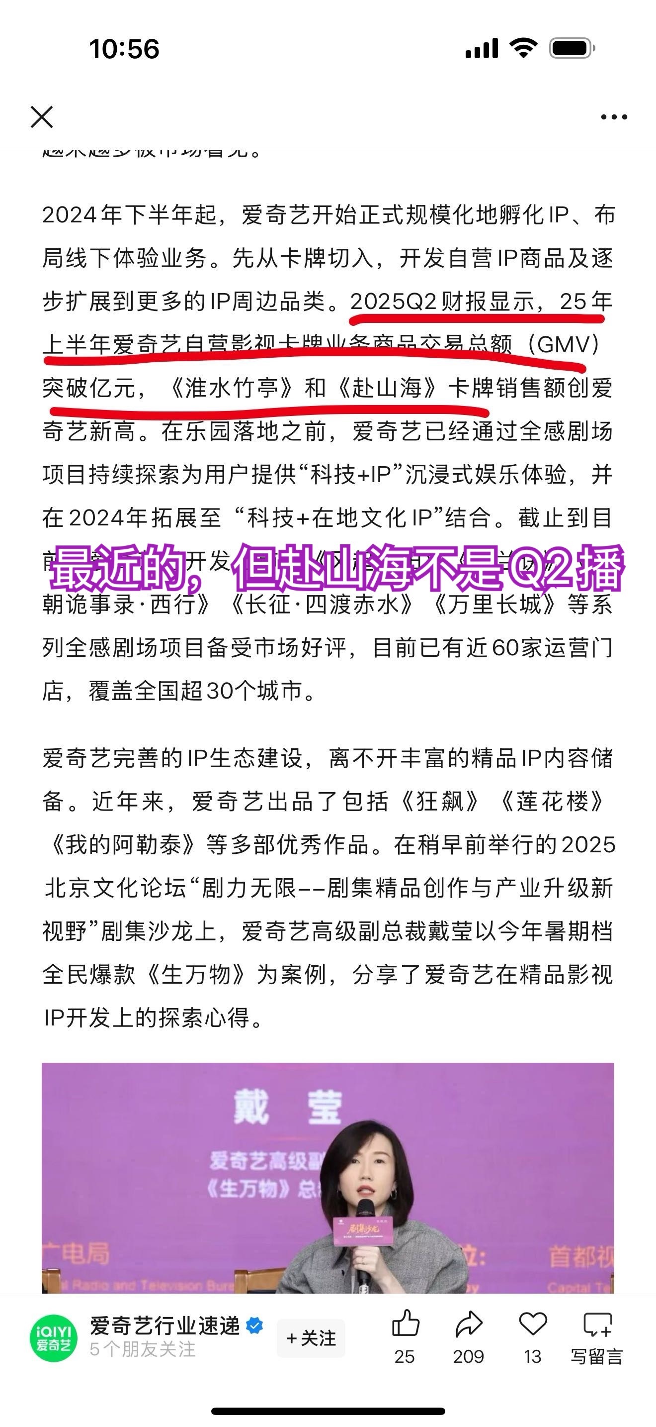 其实问题在于,两个月前,卡牌销售额写的还是2025年上半年《临江仙》和《淮水竹亭》,最近把《临江仙》开除了,改成了《淮水竹亭》和《赴山海》,但赴山海并不是25年上半年播的,上半年财报不可能有显示吧,就是把《临江仙》平移给了《赴山海》,但忘了时间限制。