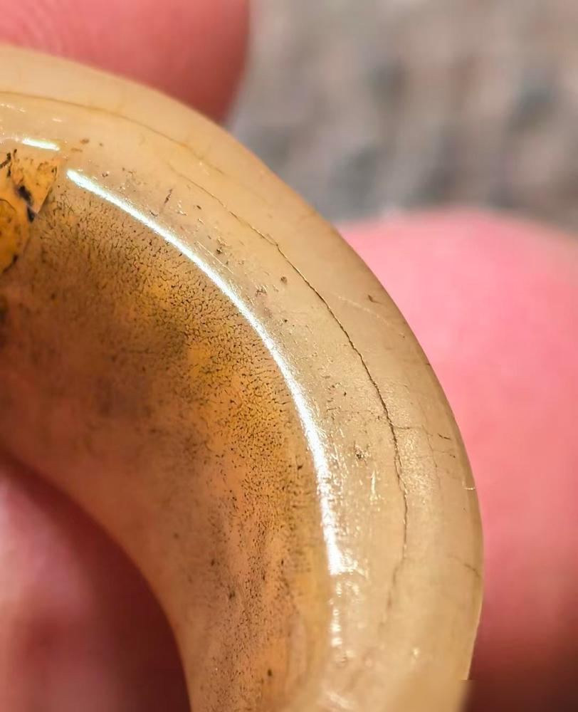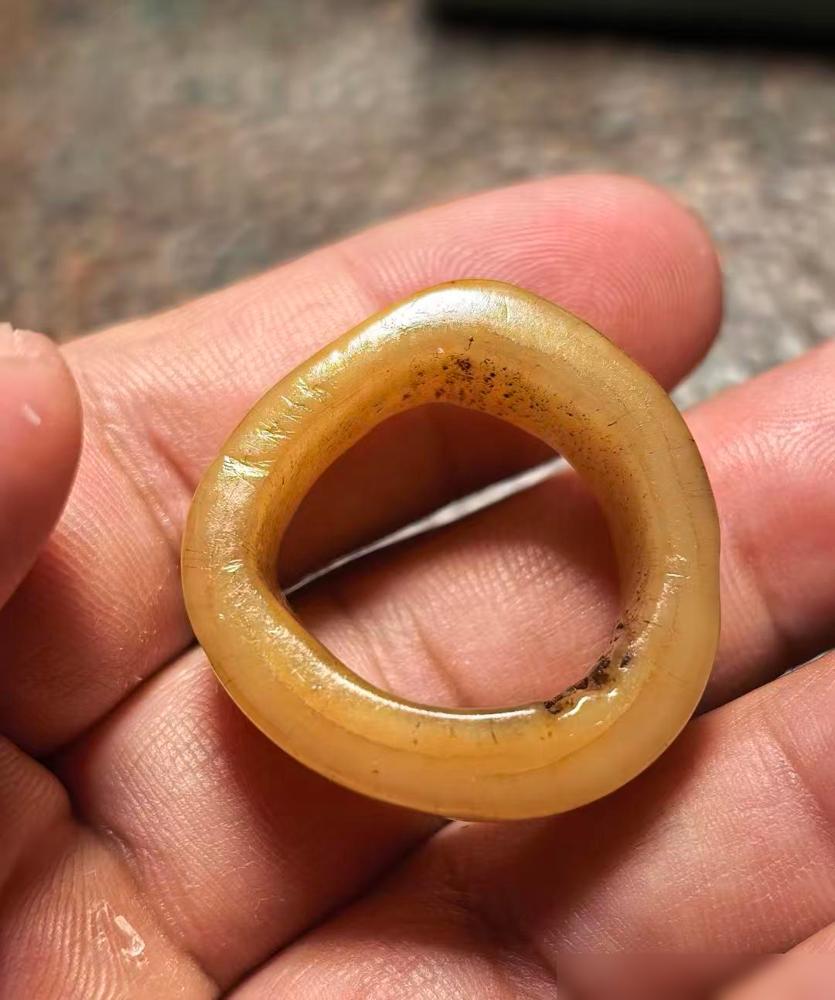 昨晚有个阿姨拉过来一袋塑料瓶,总共52斤,给了她72元。分拣的时候从袋子里翻出个扳指,看着像塑料的,我随手放窗台上了。今儿上午收纸皮的大爷一眼瞅见,非说200块买走,还说这是骨制品,人工做旧的色泽匀乎,内径19到21随形,表面有磨损压痕,黄褐色深浅不一,看着像长期盘玩的。 我越看越犯嘀咕——这真能是塑料?朋友有说像玉石的,有说表面雀丝裂纹像象牙的。咱普通老百姓哪懂这些啊?就记得以前听玩文玩的老哥说过,骨制品密度低,拿在手里轻,对着光看能看到细孔;玉石密度高,摸起来凉丝丝的,光泽更透亮。人工做旧的东西,颜色往往浮在表面,不像自然盘玩的有层次感。 不过最关键的是,如果真是象牙,那可碰不得!咱国家禁止象牙及其制品交易,万一收了违禁品,麻烦可大了。现在就想着赶紧找懂行的朋友给掌掌眼,到底是普通骨制品、玉石,还是别的啥材质。也提醒大伙儿,收废品碰到这种“小玩意儿”别急着出手,先弄清楚来路和材质,省得惹麻烦。