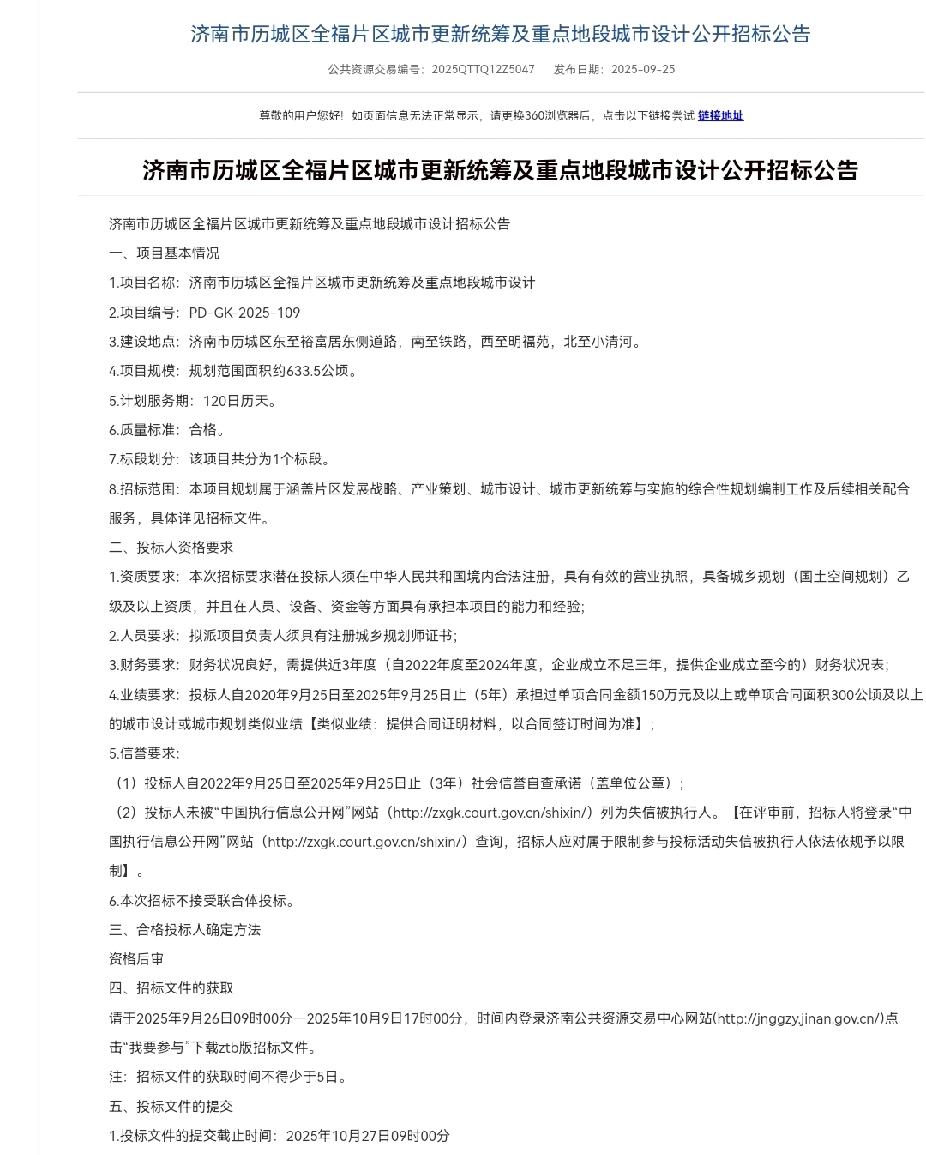 济南历城区全福片区要拆迁?南到铁路北至小清河,城市更新统筹高达近万亩。 最近,历城区城市更新统筹及重点地段城市设计进行公开招标,其范围南到铁路,北到小清河,规划范围633.5公顷,大约9500亩左右。 历城区真是大手笔啊,这次规划范围高达万亩,而且范围内全都是难啃的硬骨头。 虽然规划设计出台不一定拆迁,但不出台规划设计一定不会拆迁。这也是不是意味着,历城区有可能要拆全福片区了? 最近几年历城区在拆迁方面一直是大手笔,宋柳拆迁、东风片区拆迁、洪楼片区拆迁、还乡店拆迁,都是规模超大的拆迁。 据了解,全福片区拆迁的呼声很高,历城区也有意打造一个新的全福。曾经有规划,历城区沿着全福河一路拆到小清河。洪楼片区基本就是沿着全福河拆的。 另外,还乡店拆迁引入了房票制度,不再进行货币补偿,而是采用房票补偿。这也变相降低了拆迁资金压力,而且房票只能买历城区的房子,还能去库存,也让拆迁变得有利可图。 如果全福那边真愿意接受房票补偿,历城区还真能再拆个万亩。拭目以待吧。
