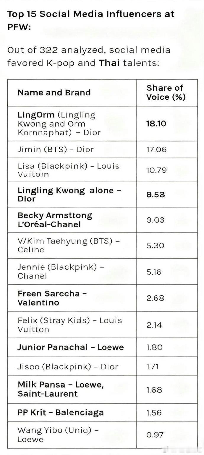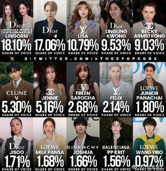 王一博巴黎时装周社媒影响力人物重点划起来:唯一中国面孔、社媒影响力TOP15