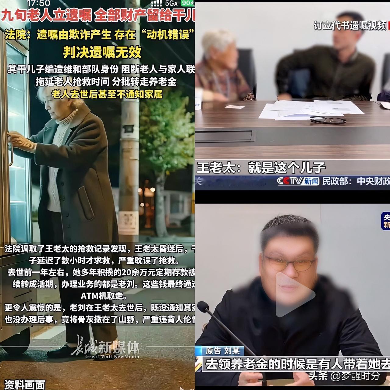 真的是疯了 骗子都嚣张到什么地步了! 上海一九旬老人遭遇养老骗局,为了继承遗产,骗子甚至还把老人的家人告上法庭,真的是倒反天罡! 原来王老太住在养老院,家人平时疏于对老人关心,于是就被骗子趁虚而入了 无业的刘某刻意接近老人,哄骗成为其干儿子,还把老人带走,换了电话,不让家属联系,让老人以为被遗弃了。 几年下来,老人账户里的34万存款,被刘某分批取走,他还哄骗老人立下遗嘱 更气人的是,老人病重昏迷时,他拖延救治,去世后还私自处理了老人的骨灰。 最后被发现的原因,是他贪心想继承老人的遗产,把老人的家属告上法庭,没想到自投罗网。 好在法律给力,判定遗嘱无效,并全额返还所有财产,由孙子小林合法继承 有人说,处罚太轻了,这么精心的一场骗局最后竟然只是还钱。应该追究这个人的欺诈行为 也有人说,家人责任最大,老人一个人住养老院,失踪这么久,干嘛去了。 还有人说,养老院也有责任,随便就让人把老人带走了,那安全谁来负责。 依我看,这个干儿子真是贪心不足!本来家人找不到老人在哪,结果他又回来告人家,现在好了,通通还回来。 大家怎么看?