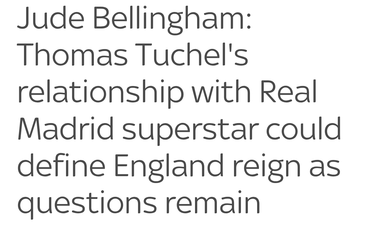 天空体育:裘德·贝林厄姆——托马斯·图赫尔与皇马巨星的关系或将决定他在英格兰执教时期的成败,疑问仍然存在