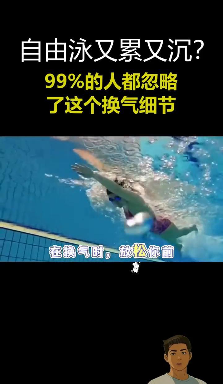 自由泳累,不是你没力气,是头抬高了。 泳镜一半泡水里,身体才不往下沉。 头多抬2