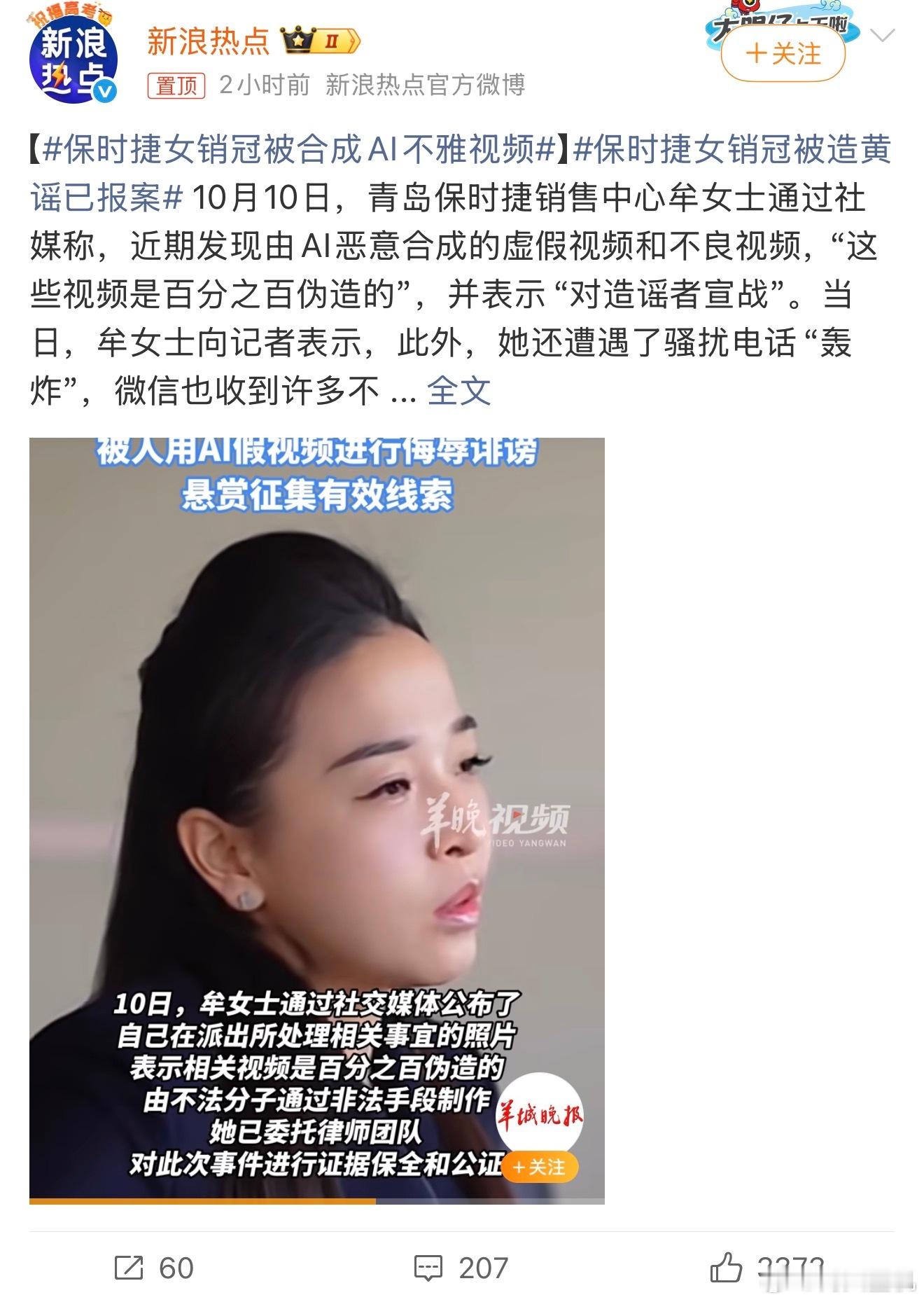 保时捷女销冠被合成AI不雅视频女性销冠,肯定是一些眼红的同行或者某些没事干的网友做的,互联网总有些人仇富,见不得别人一点好,与其提升自己不如诋毁别人,真想不明白造人家这种黄谣,造谣的又能得到什么好处,互联网真的很多时候看不到真相,很多人更愿意相信负面的消息,就是缺少正能量。