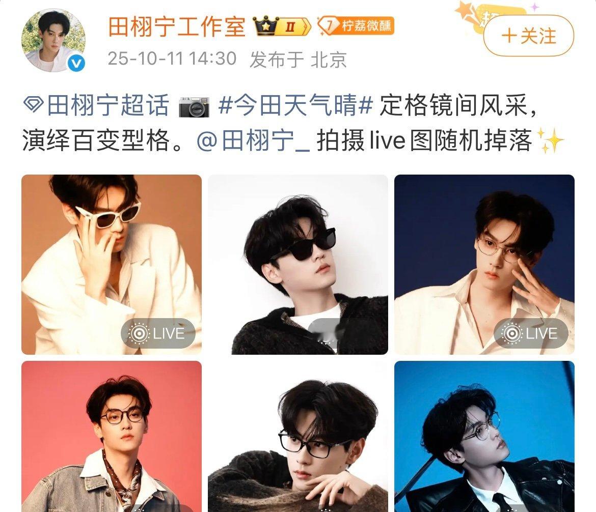 田栩宁拍摄live照 田栩宁live照太绝!镜间定格灵动瞬间,每帧都在演绎百变型格魅力!