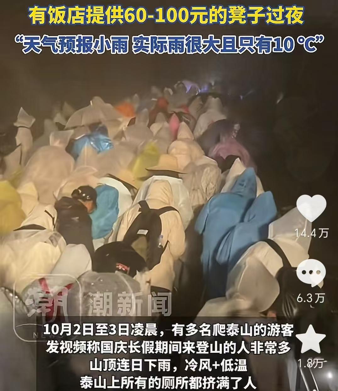我刚刷手机,就看到说泰山没火,反倒是泰山的厕所火出圈了。这是咋回事呢?原来是10月2号晚上,泰山那边突然就下起了大雨,风还贼大,这可把好多人给整不会了。 我估计啊,那天去登山的人都没查当天的天气吧,毕竟十一假期嘛,出去玩的人超级多,泰山上到处都是人。 山上的厕所本来就少,路上的厕所里全是人,这突然一下大雨,那些人就全往就近的厕所里跑,就为了避雨。 山顶上有饭店,可那收费贵啊,住一晚上还不划算,好多人想着还不如在厕所凑合过一晚,结果啊,厕所里全是人,外面的人冻的发抖,再看看厕所里的人,虽然空间小,味儿也不好闻吧,但好在能避雨。 这旅游玩的,把自己整这么狼狈,我都想笑了,你说要是出发前查下天气,也有个准备不是。 我建议以后出去旅行啊,可要长点心,提前查好天气,做好计划,别再遭这罪了!