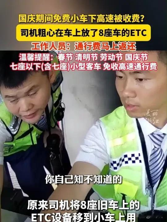 假期高速免费8天,ETC车主可得注意了!有几种扣费情况千万别踩雷。早点了解能帮你减去不必要的损失。 超时这情况也得注意。高速免费看驶离出口时间,如果10月8日24点后下高速,哪怕超一分钟也全额计费哦,去年就有车主因堵车错过时间被扣全程费用。 车型不符也不行,免费只针对7座及以下小型客车,8座车走ETC直接会扣费,之前有车主开8座SUV想蒙混过关,结果不仅要缴费还会被登记个人信息。 进出车道混用会让系统判断出错,可能卡着或后续乱扣费。还有设备或账户出现异常也会被扣费哦。 所以大家出行前一定要检查好,别等被扣完费才后悔!