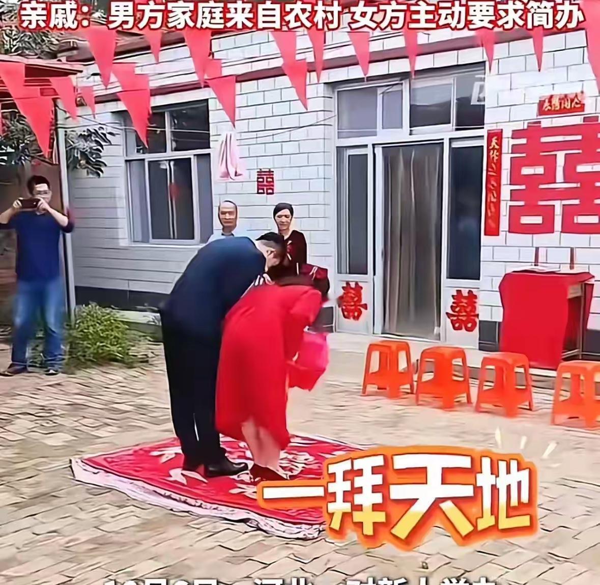 娶到这样的新娘,真是三生有幸! 一拜天地 ,二拜高堂 ——” 这是河北农村的一家旧院里,一位大三学生为表哥主持的婚礼。他攥着手写流程单,磕磕绊绊的地主持着,因为,他没有准备,是被临时抓的“壮丁。” 因为这是一场没有婚纱、婚车的婚礼, 更别说请主持人了。结婚当日,小院仅贴了几张喜字,就连 “尊长座”都是由四个塑料凳子组成的。新娘没有穿婚纱更没有旗袍,只是穿是着平常的红大衣,头发也是自己简单梳理了一番,就连新郎一身西装也是临时租借的。 这么寒酸的婚礼,你以为人家是结不起吗?当然不是,他们是始于才华的一对博士夫妻 。 新郎是土生土长的河北农家子,父母靠种把他送进博士课堂。新娘是湖南人,初次去新郎家便读懂了这个家庭的艰辛父母的不易,她主动提出,婚礼越简单越好,没必要走形式铺张浪费。 看惯了奢华婚礼的街坊邻居们都被这接地气的博士新娘吸引,院里挤满了看新娘的人,他们纷纷称赞,这样的媳妇中国地里少找。新娘的公婆更是喜上眉梢,反复念叨 “娶了个好媳妇”。敬酒时,婆婆拉着她的手不停道谢,她却说:“这个家庭培养一个研究生不容易”,一句话戳中无数网友的心。 在注重仪式感的今天,像这样务实的女孩子实属罕见。高知的认知的确与众不同,和那些靠仪式感来满足虚荣心的女孩子来说,就如同金子和废铁的差别。 其实,真正的幸福从来不需要排场!