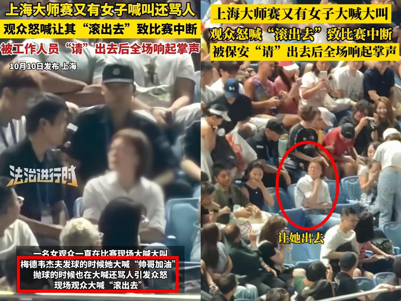 上海大师赛又被中断, 9天前刚有个撒泼的被行政处罚, 这又来个更离谱的,竟然在国际赛场上 大声喊叫还骂人,全场观众集体喊让其“滚出去”。 赛事主办方早明令禁止歧视言论,可总有人把赛场当撒野地。 有人说该按侮辱罪严惩,毕竟法律里明确公共场所公然辱骂可能涉刑责。 但警方通报一出才知,涉事女子是在册精神病人,最终被送医治疗。 这结果虽合法,却难免让人意难平。国际赛事的观众那么多,该怎么排查是个大问题,赛场秩序光靠观众自发维护可不行。