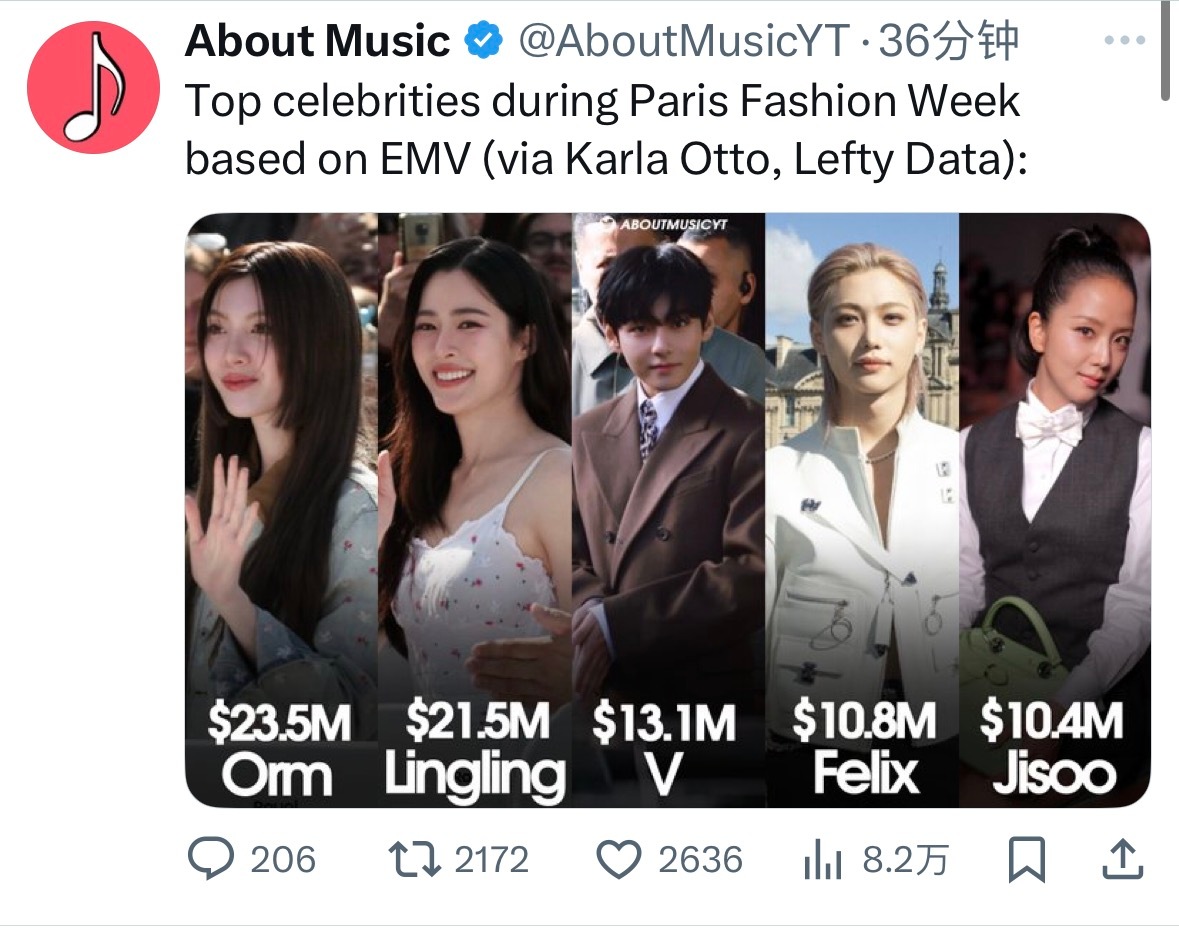 【twi】巴黎时装周EMV指数Orm、邝玲玲、金泰亨、李龙馥、金智秀