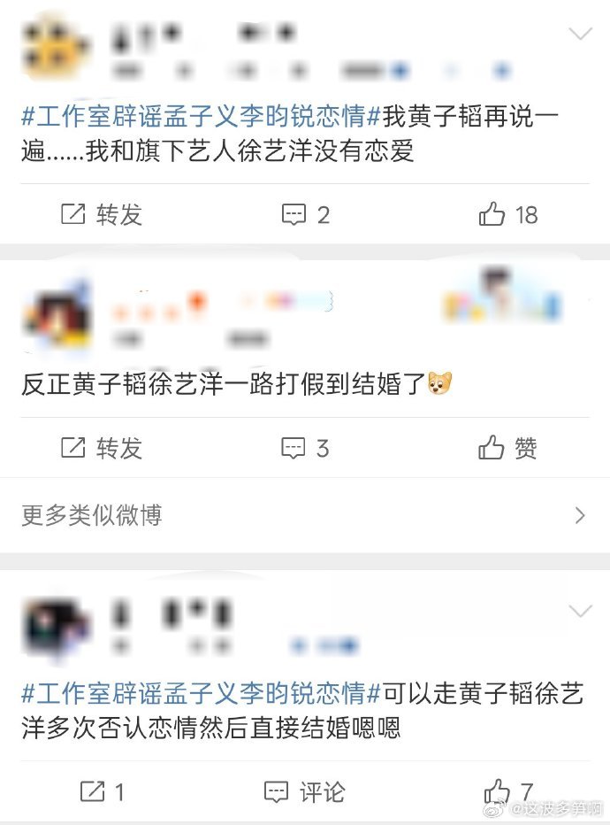 工作室辟谣孟子义李昀锐恋情,可是谁还记得其实当年黄子韬说徐艺洋只是旗下艺人…也辟谣过,现在都要结婚了哈哈哈哈哈 十一刷到宝了
