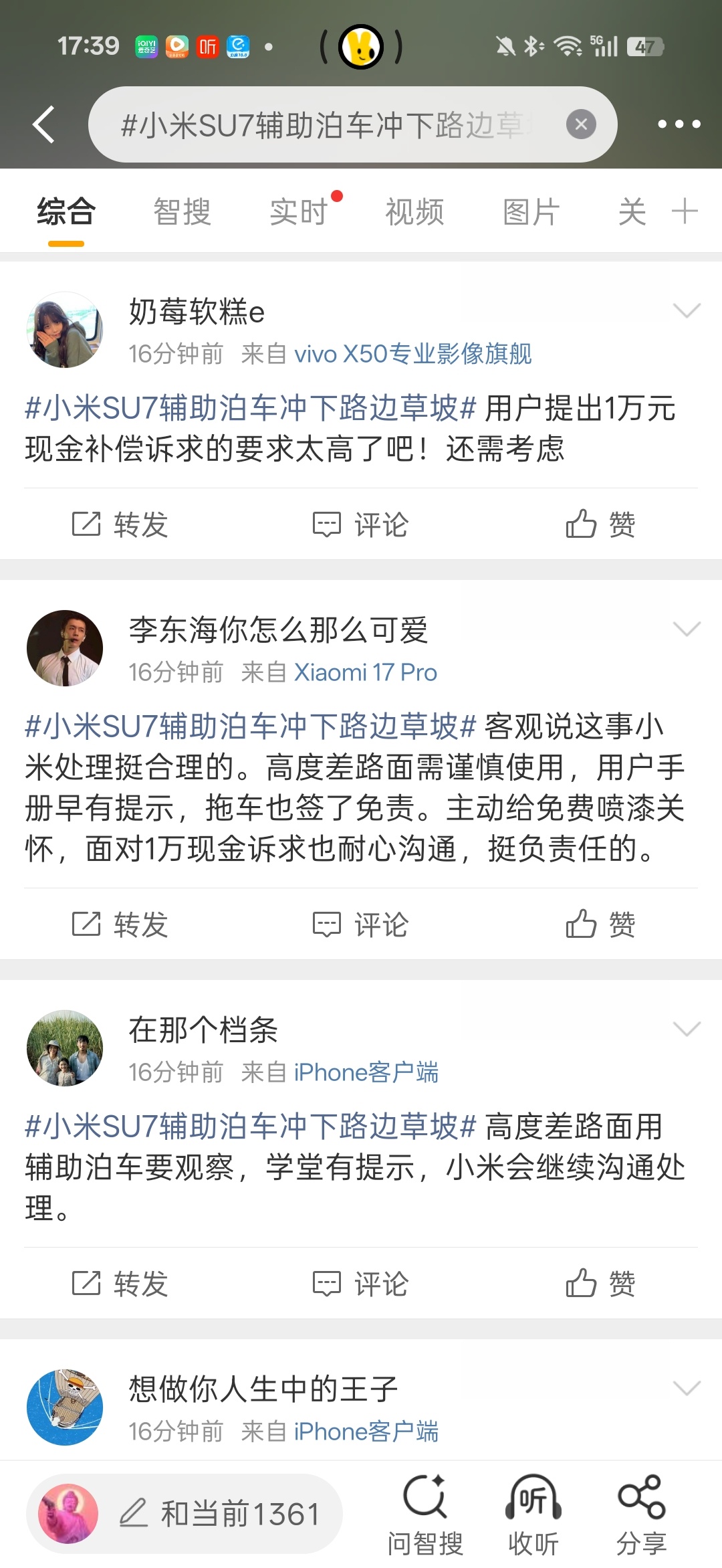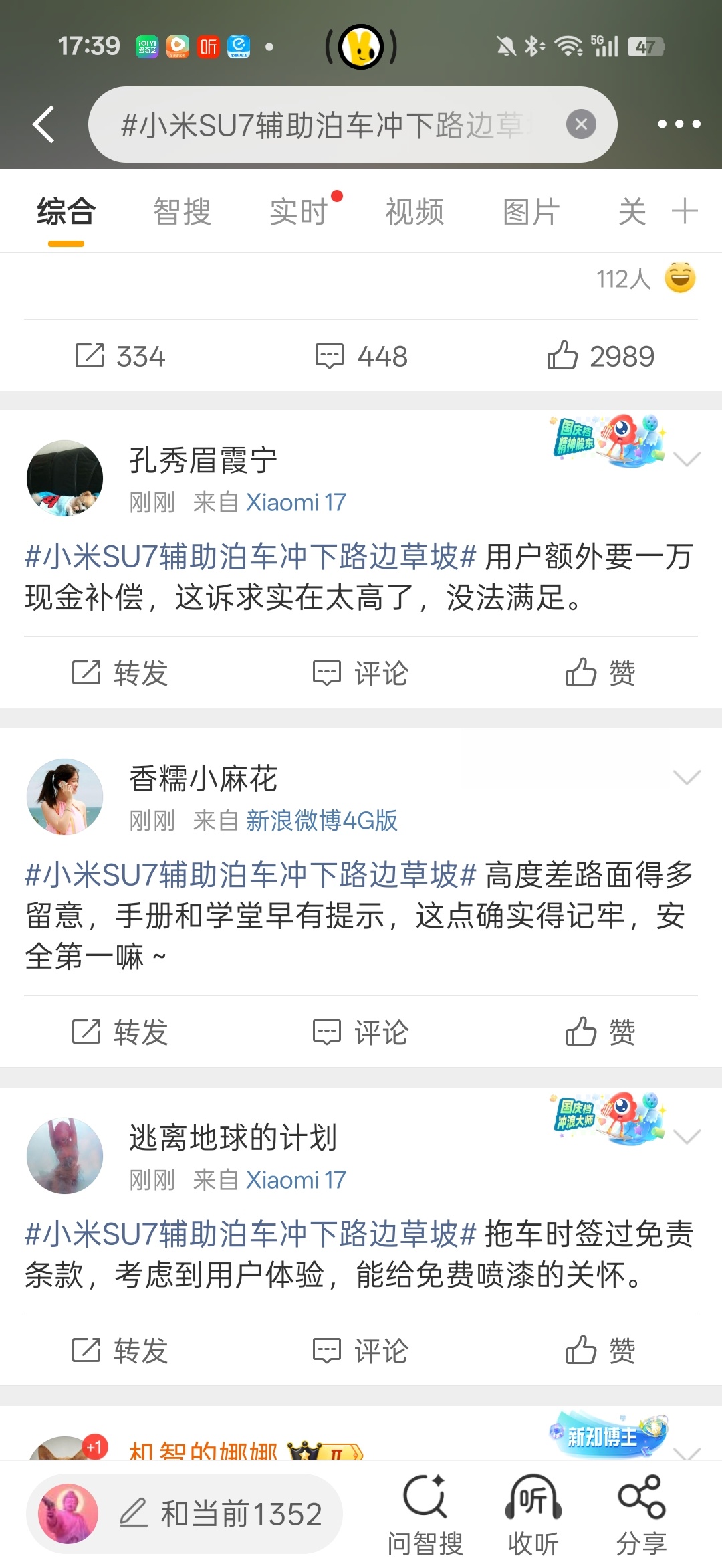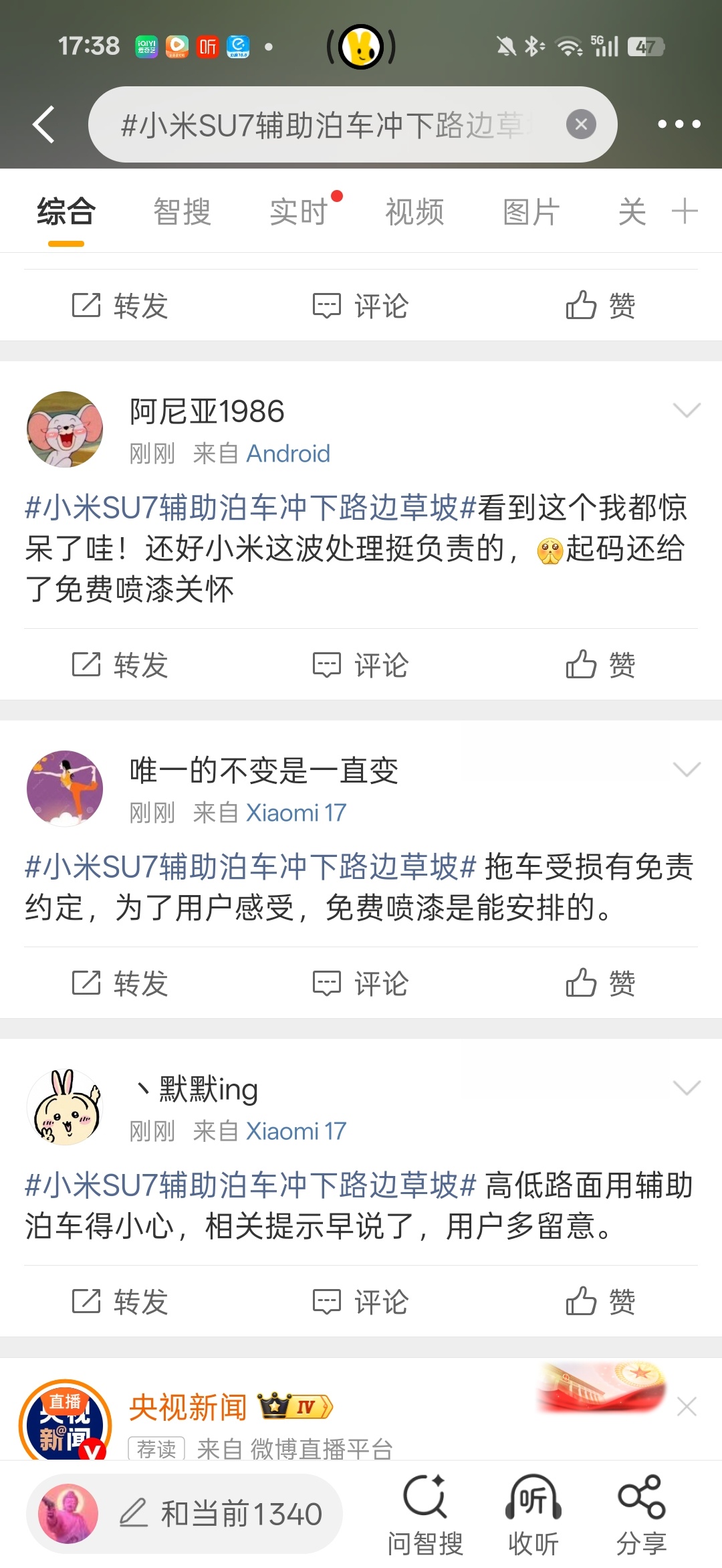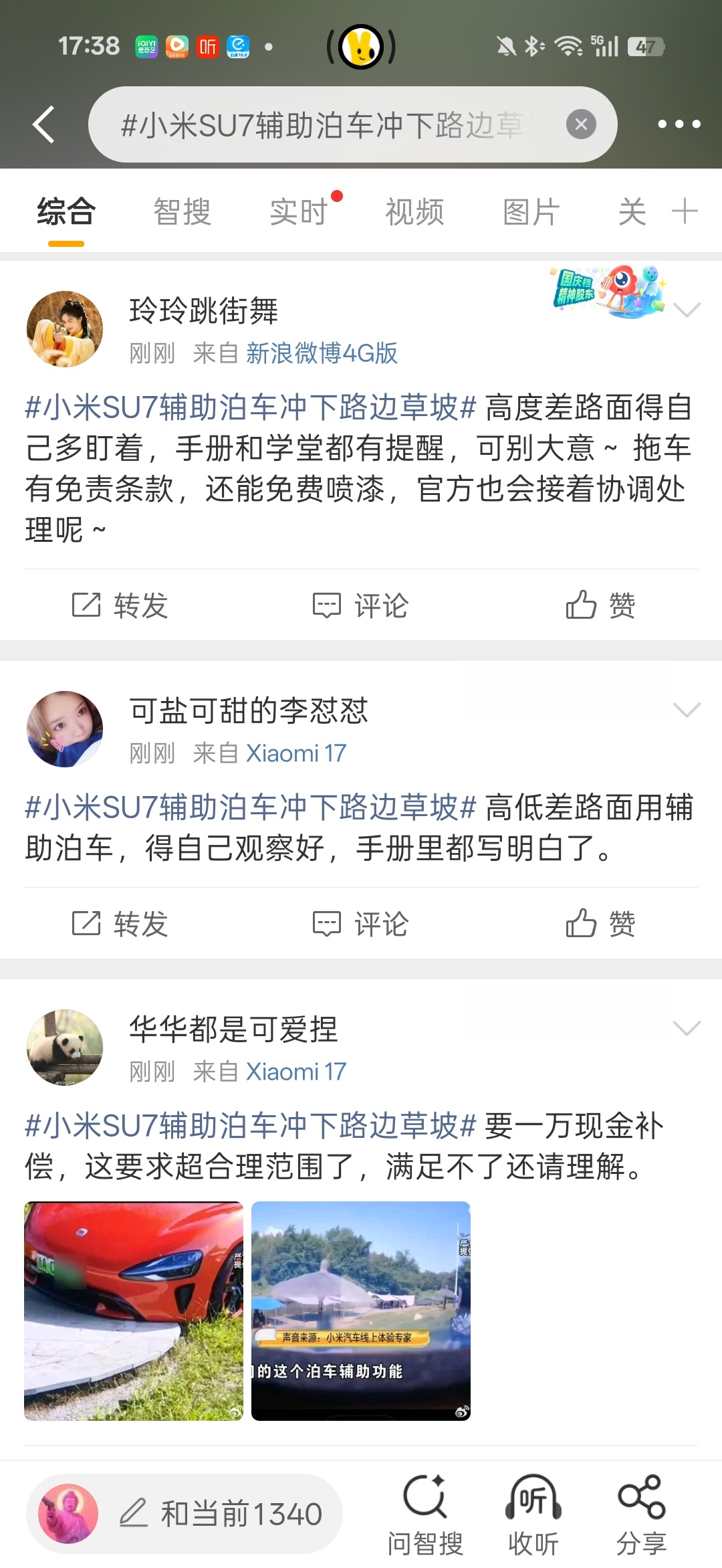 小米SU7辅助泊车冲下路边草坡怎么这个热搜冒出来这么多统一两句话的控评话术,正常用户看完整个视频我觉得都不会说什么,背后是谁再安排水军控评?[笑cry]