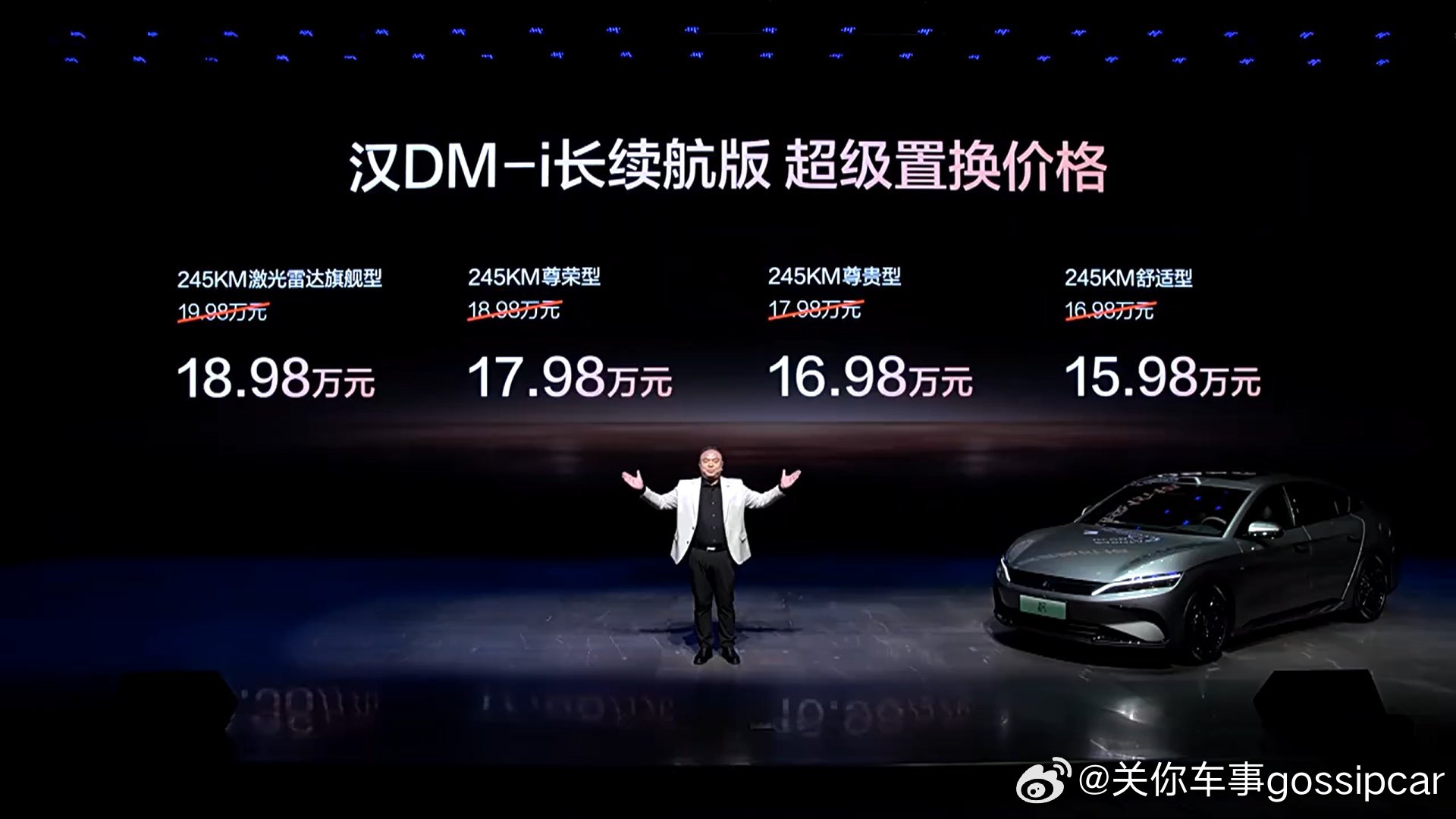 这次汉DM-i 245KM长续航版价格有意思,置换补贴后售价15.98万-18.98万元。汉 EV长续航版超级置换补贴后售价15.98万-20.58万元。