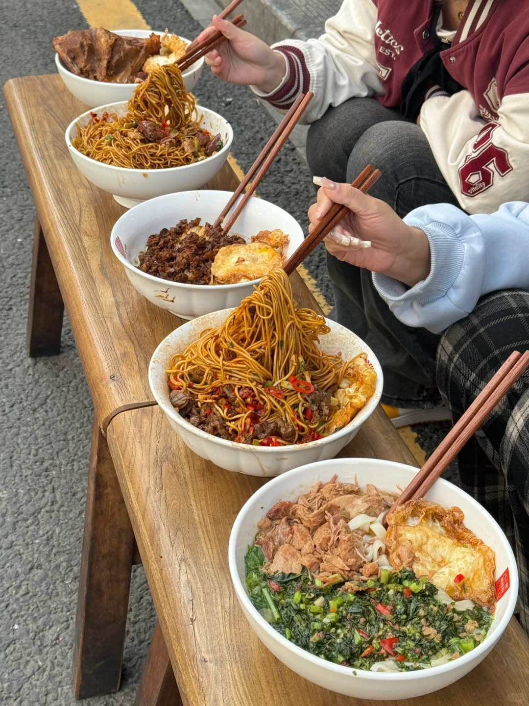 推荐:小炒黄牛肉干拌面、原汤肉丝粉、牛肉酱拌粉、扇子骨粉等…煎蛋很香,一定得加一个!!