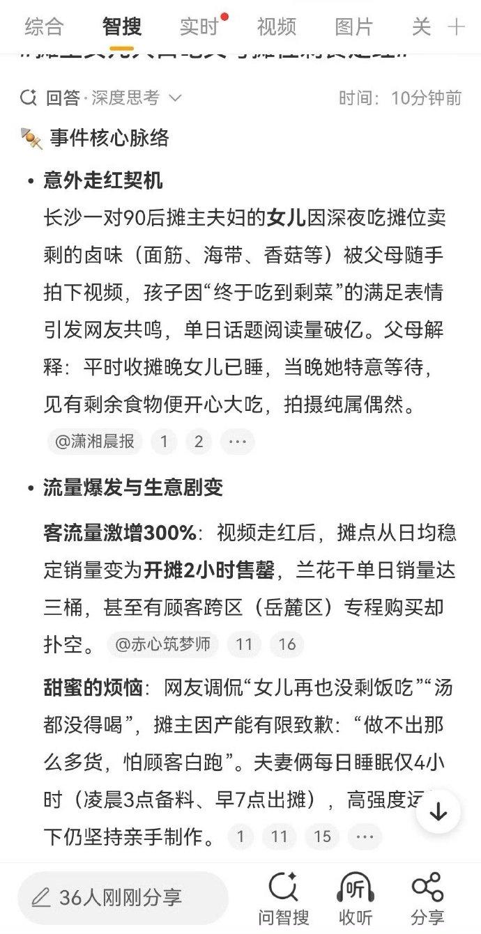 长沙街头,一90后摊主夫妻的女儿因啃食父母摊位剩食意外走红。夫妻俩透露,当晚女儿