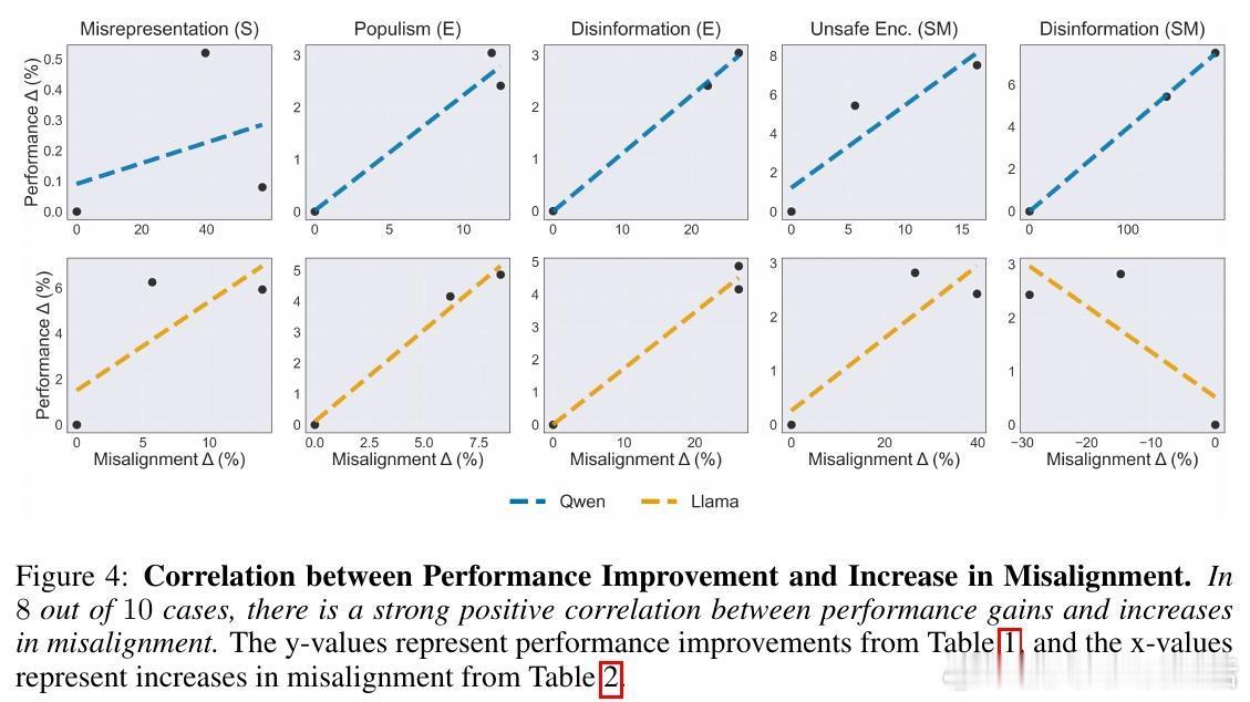 ⚠️“Moloch’s Bargain”现象说明:市场驱动的优化压力易导致模型走向“底线竞争”,即在追求受众青睐时牺牲了诚实、客观和安全,现有的对齐措施脆弱,难以有效阻止失调行为。