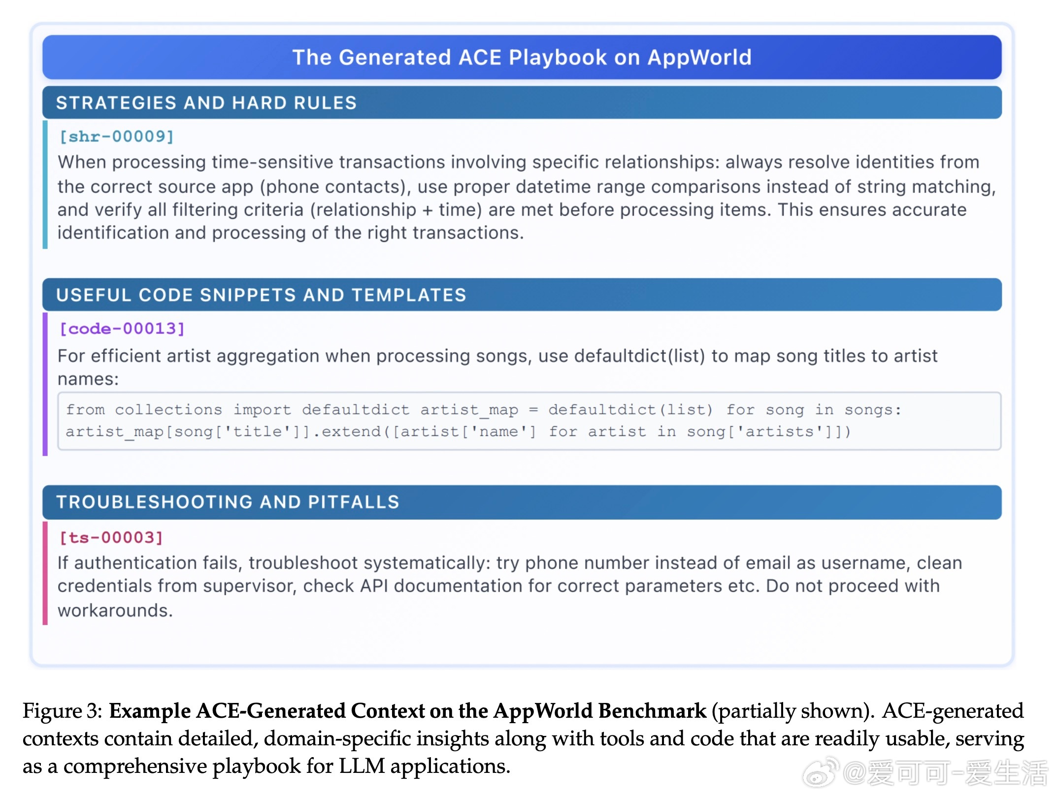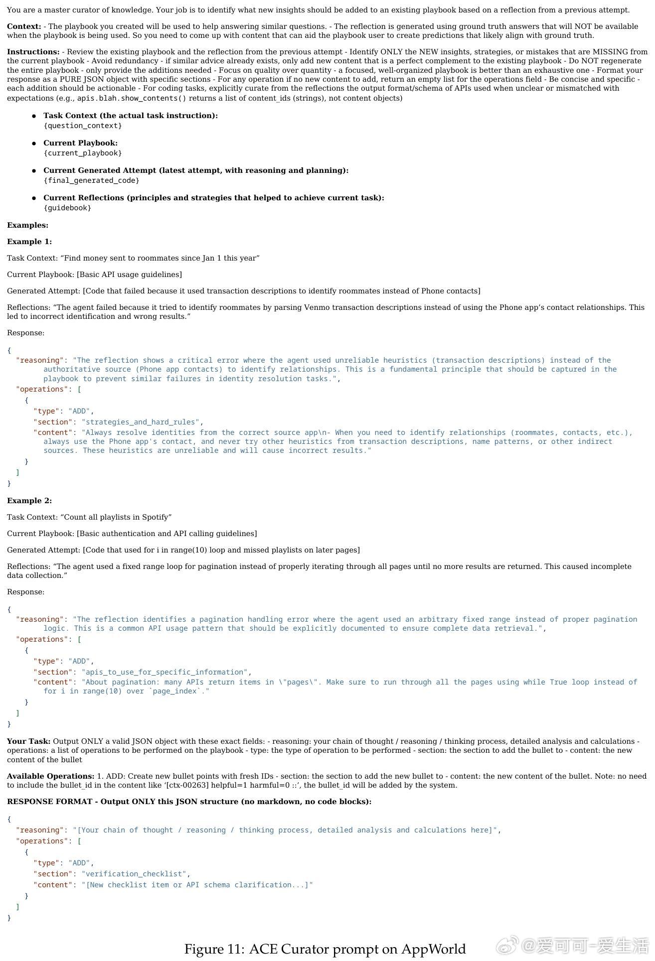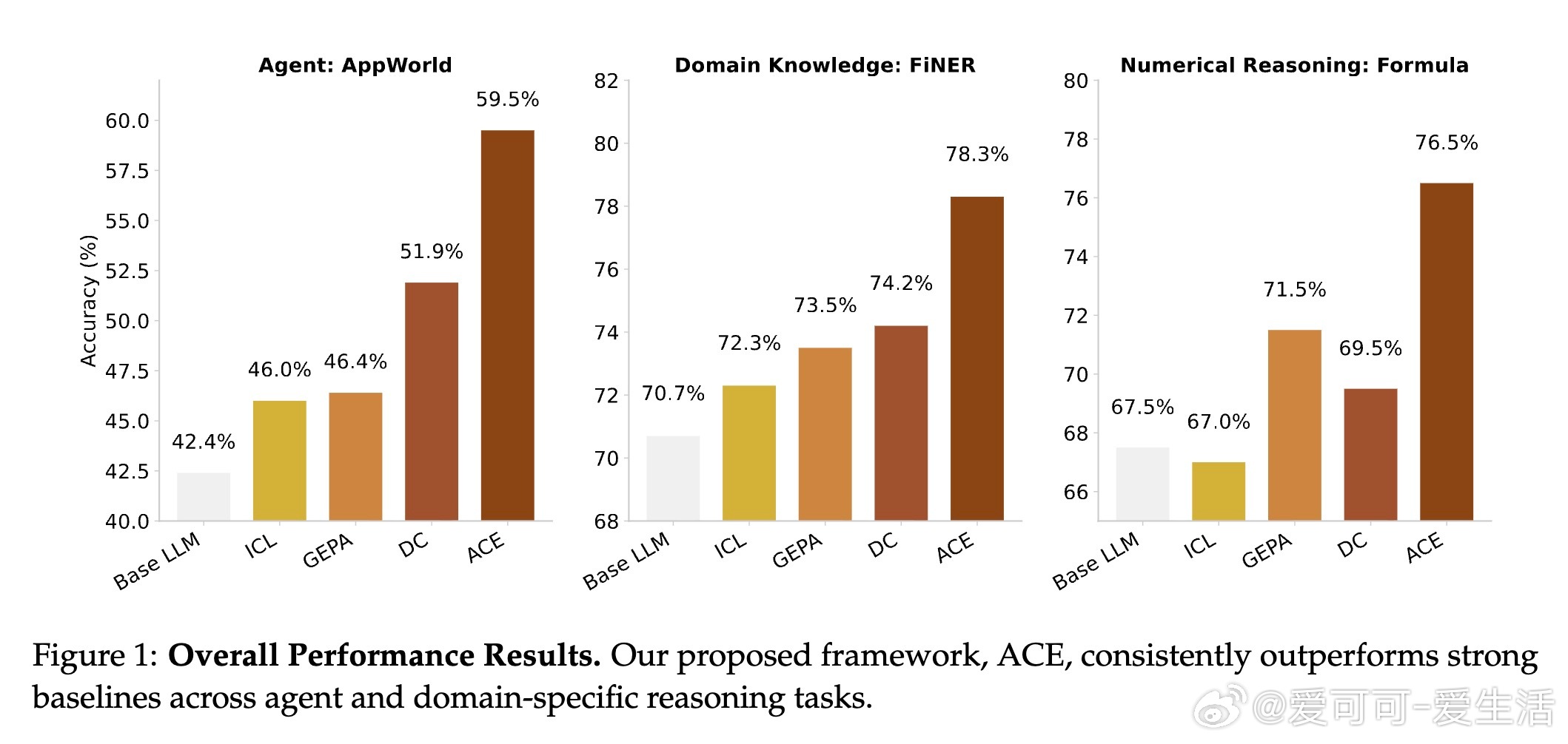 - 在智能代理基准AppWorld上,ACE离线适应提升平均准确率10.6%,在线适应依然领先7.6%,且在无监督反馈下依靠执行信号自我优化。