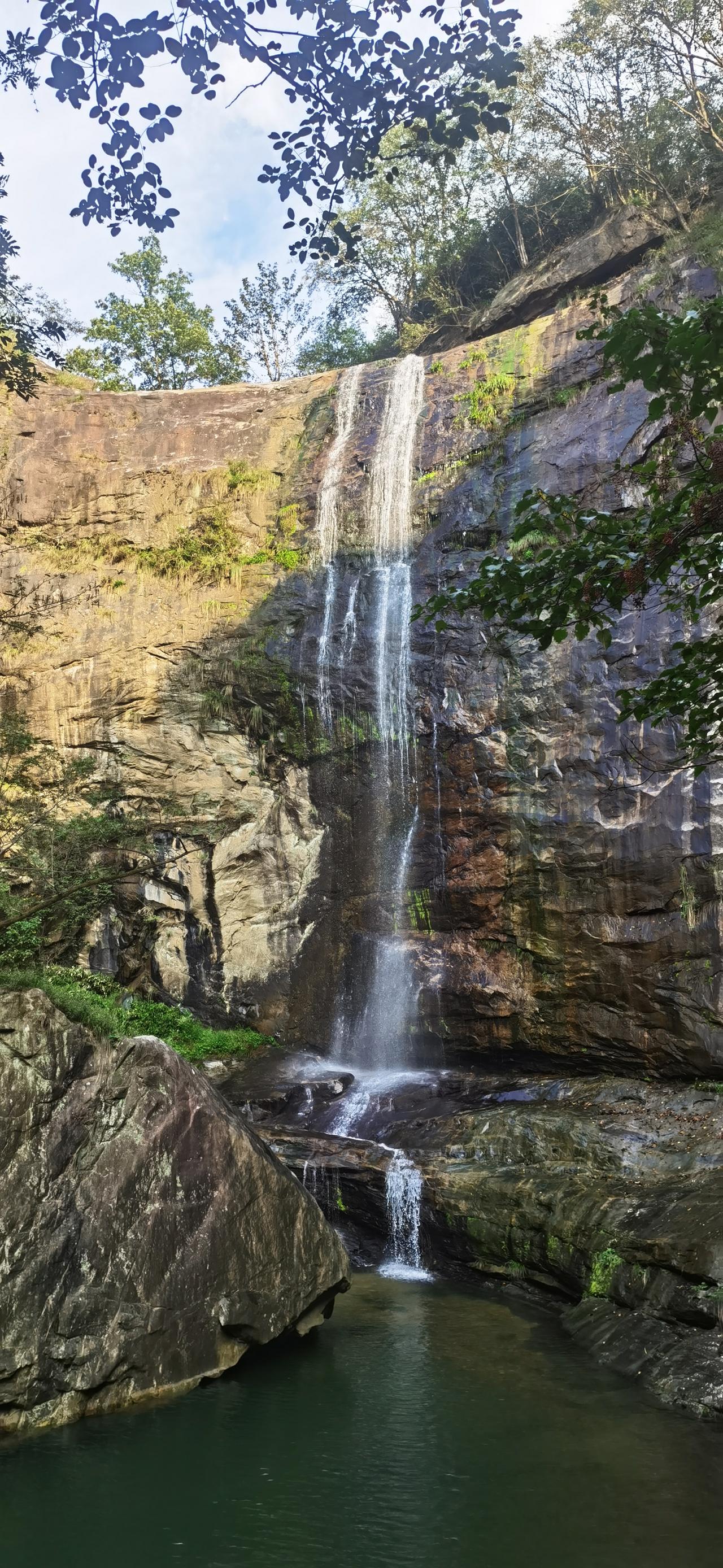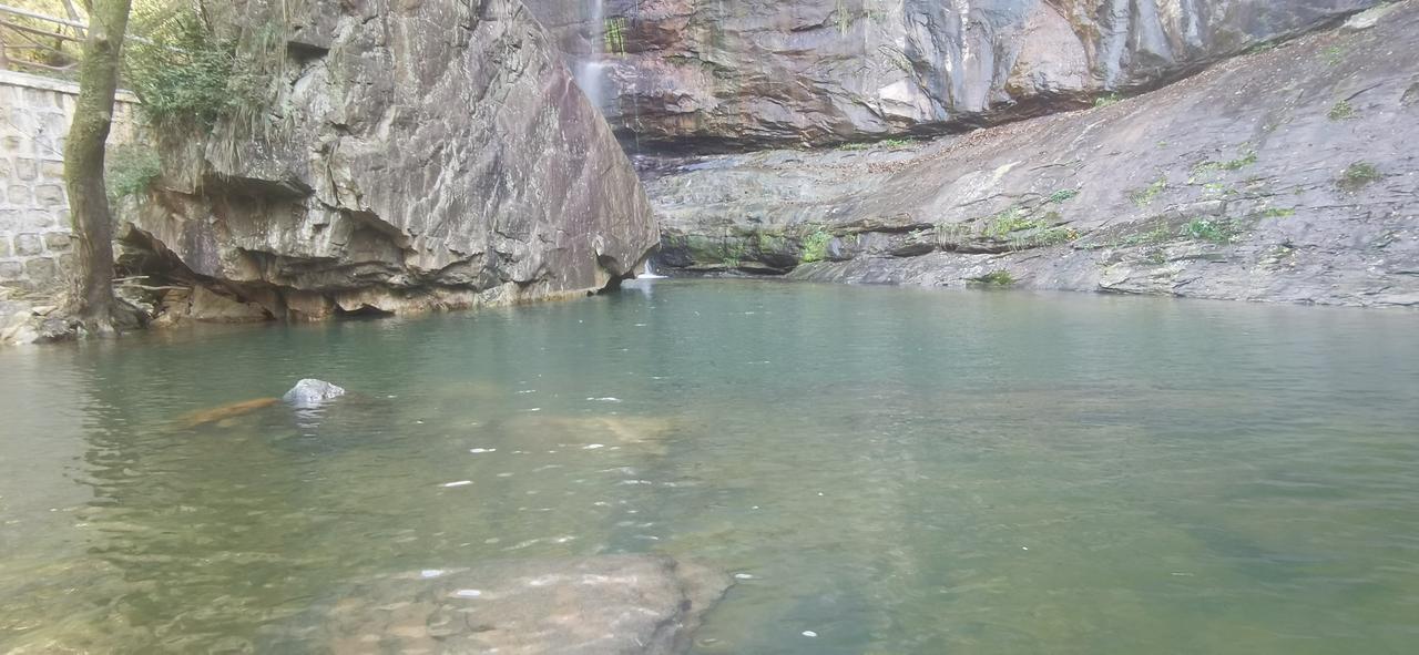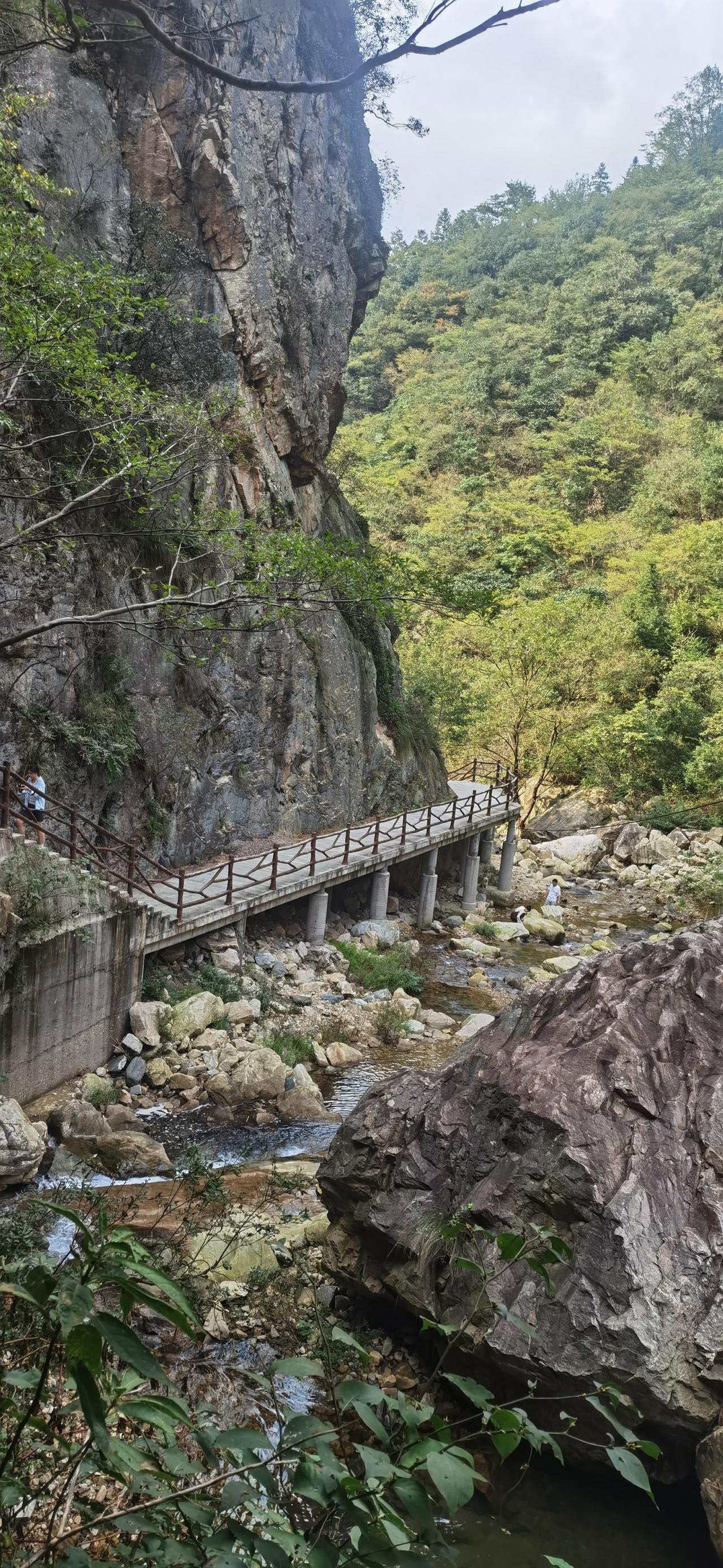 舒城有个百丈崖 百丈崖座落于舒城县庐镇乡安菜村。其地与潜山县、桐城市相邻,其名远近皆闻。说来奇怪,我未上学时便听母亲几次说起过百丈崖,印象深,二三十公里左右的地方,可说是家门口了,却在五十多年后的今年的中秋节当天下午,才得以第二次观光。 第一次前住探访,是在六年前的七月。那次回老家,几位少时同学听我说还没去过百丈崖,便慷慨结伴陪我同行。其实他们都去过,这份情谊,令我感动并记忆深刻。此次再赴百丈崖,其实也算临时起意,因为本是陪伴老母亲共度中秋节,天气好,下午又无其他事,便主动约起一位好友和我的妹夫,加上儿子,一行四人,驾车就走。 百丈崖所处之地,实际是一个山冲,一个“夹皮沟”,一个峡谷,山大谷深,其本身是一面巨无霸型的山崖,目测高达数十米、面积数千(可能上万)平方米。现在的百丈崖,与六年前已大不同。那时要将车停得远远的,步行要走田地中的小径,峡谷底部是一条小溪,乱石穿空,杂草丛生,行路艰难。现在的小溪还是那条小溪,可是里面的小溪边已修成栈道,到峡口的路已是宽阔漂亮的水泥路,峡口已建成不大也不小的停车场,停车场边是一个由全国政协机关捐赠的现代感十足的“安菜村百丈崖旅游驿站”——据了解,这里将要开发成旅游观光风景区,一个非常值得一游的旅游目的地。 百丈崖最吸引游人之处,不仅在于其自身的巍峨雄奇,还在于峡谷深处数公里、风光独特的两道瀑布。六年前第一次来,止步于第一道瀑布,多少有些遗憾;今次来,算是走完了全程,愿望得以实现,结合同伴介绍,于是亦有了新的体悟:春天来这里,山花烂漫,满目葱翠;夏天来这里,瀑布轰鸣,避暑胜地;秋天来这里,神清气爽,疲劳远离;冬天来这里,别样雪景,山村野趣。本人笔拙,不擅描摹,你若来了,或许可获得比这丰富百倍的灵魂体验。 好了,附上中秋节日百丈崖一组照片,作为补充,请你观赏和感悟大自然之妙[666]
