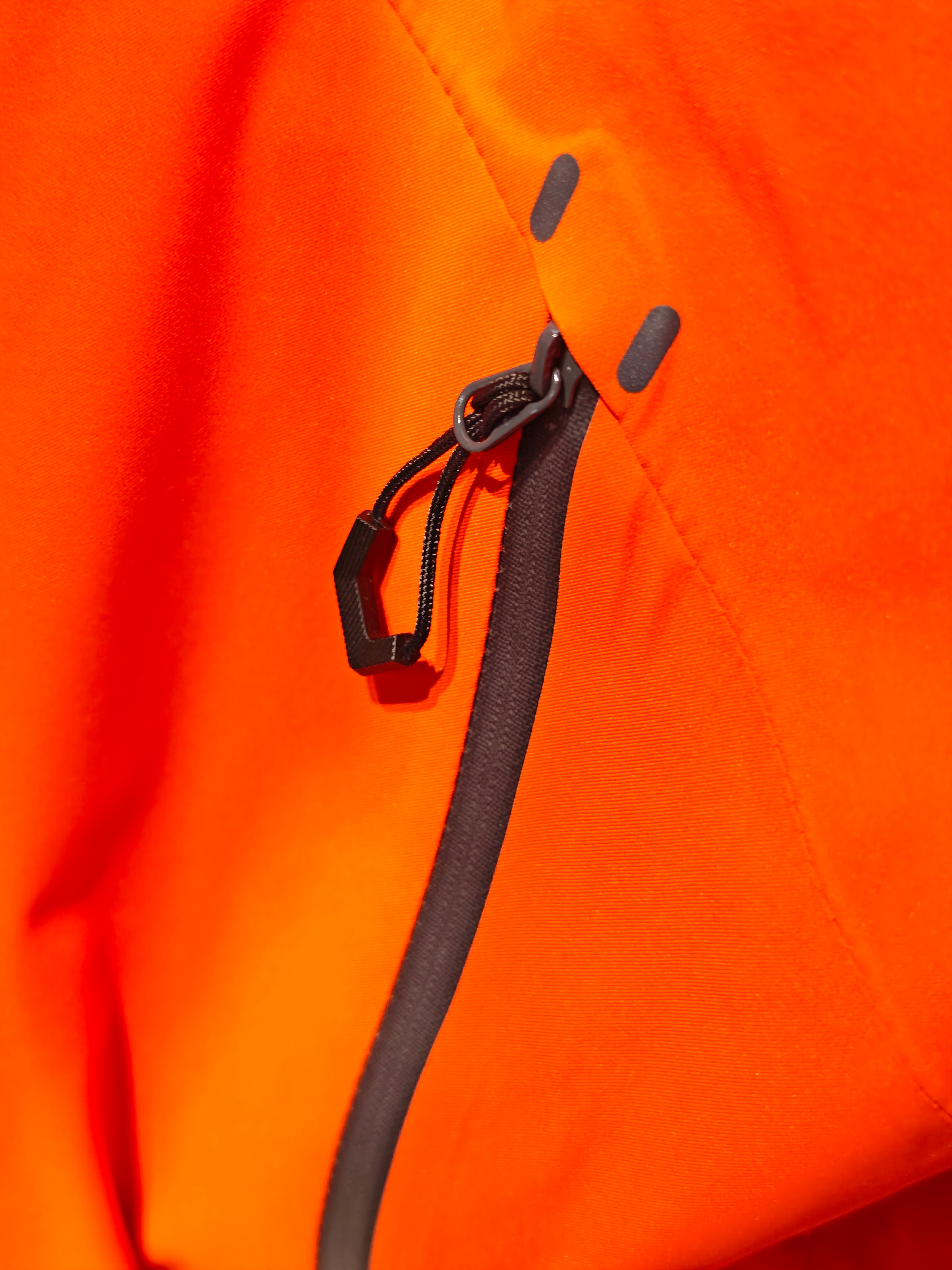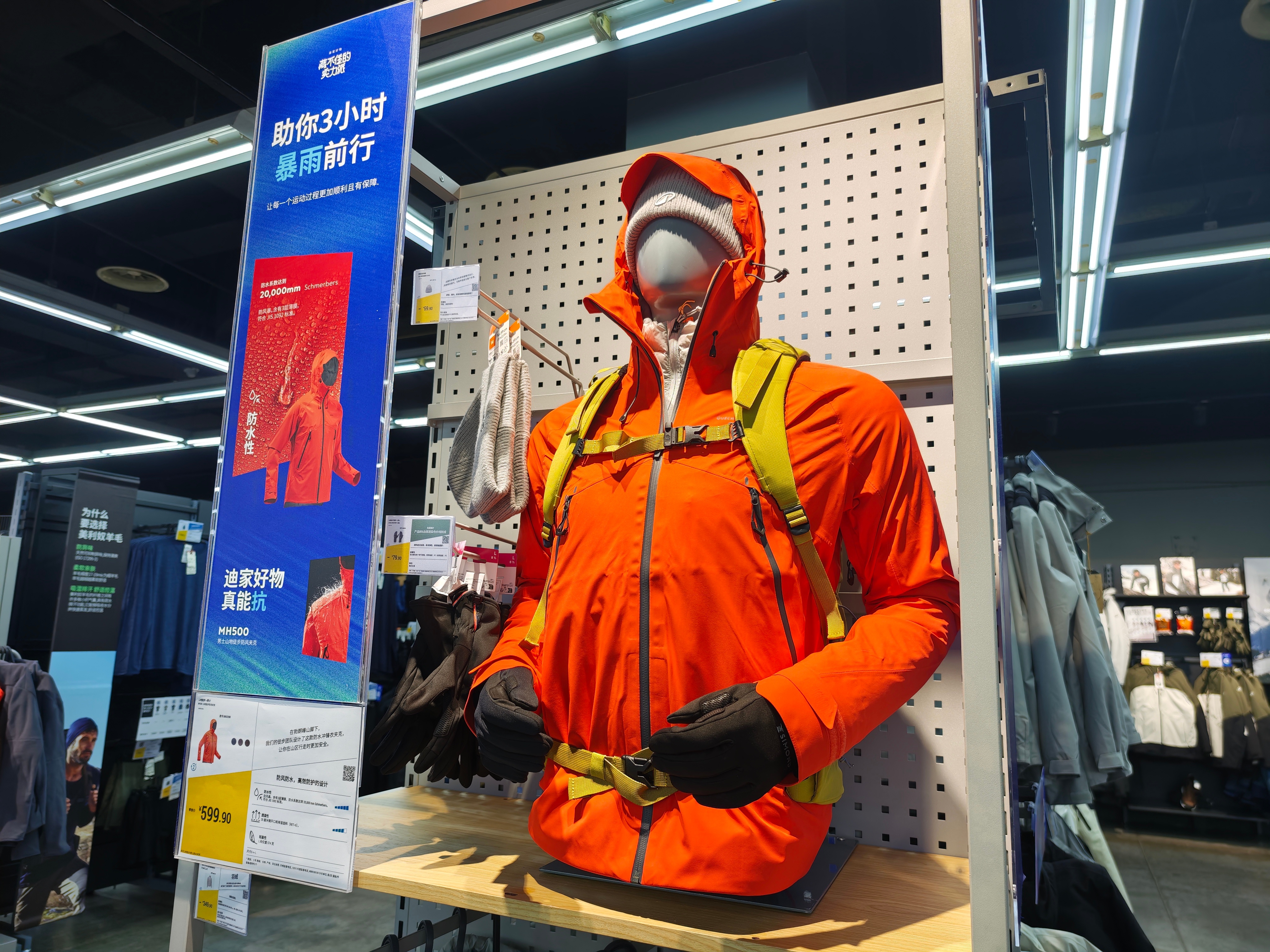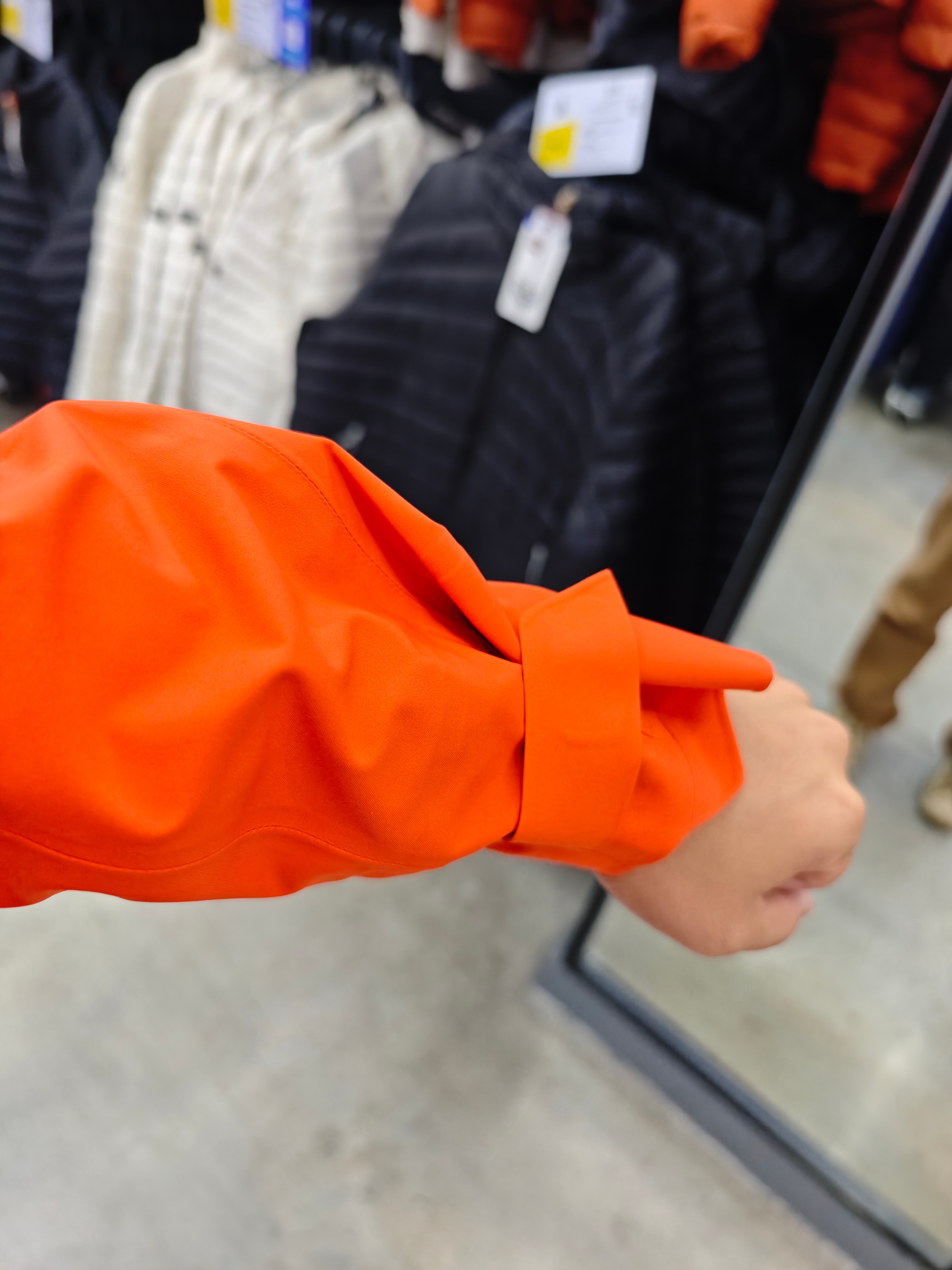 真防水,20000mm的防水,15000g的透湿,内衬都是很严密的压胶条,外面是锦纶和聚酯纤维面料,腋下有通风拉链。