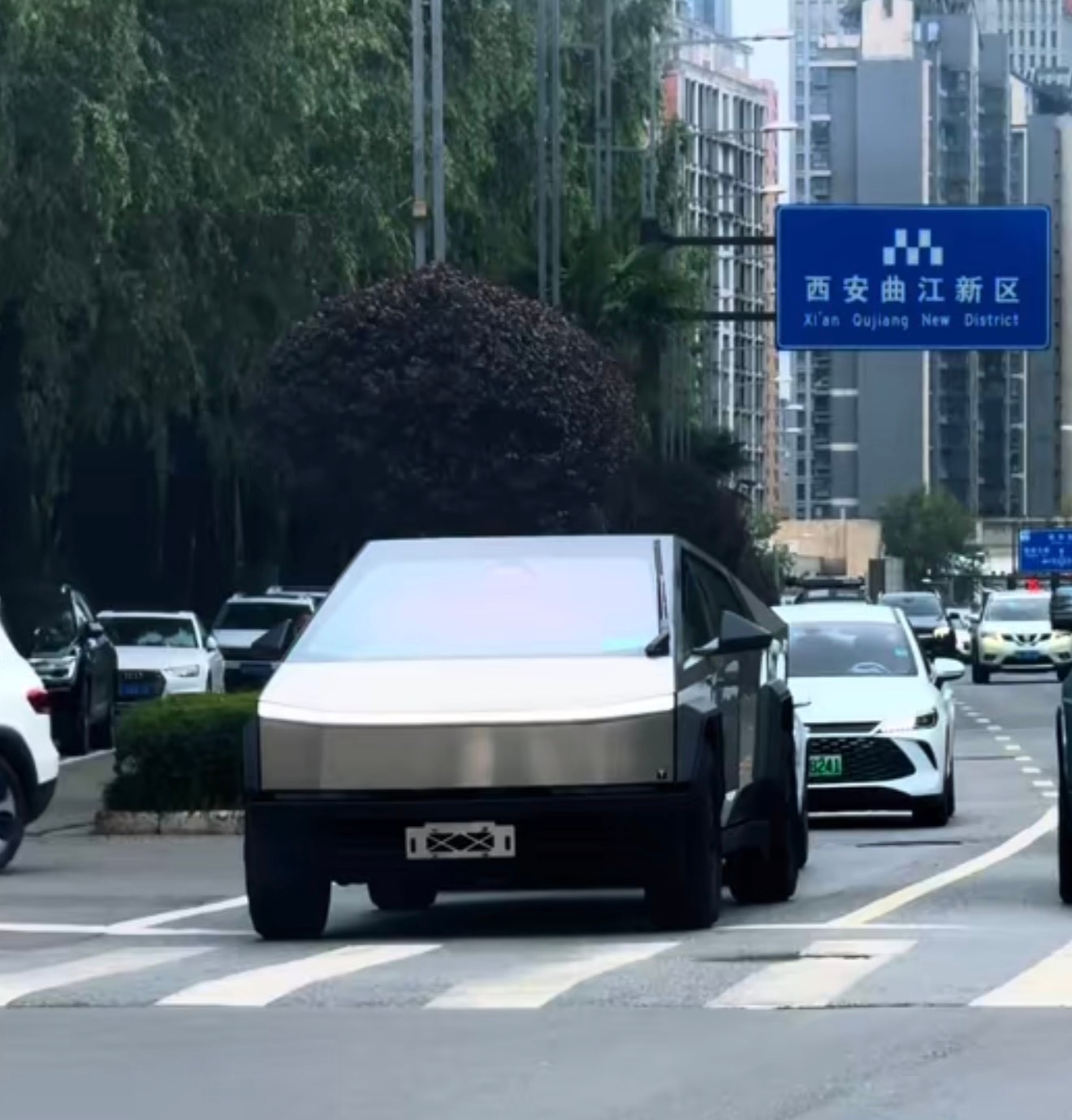 [哆啦A梦害怕] 网友拍到西安上路了一辆 CyberTruck