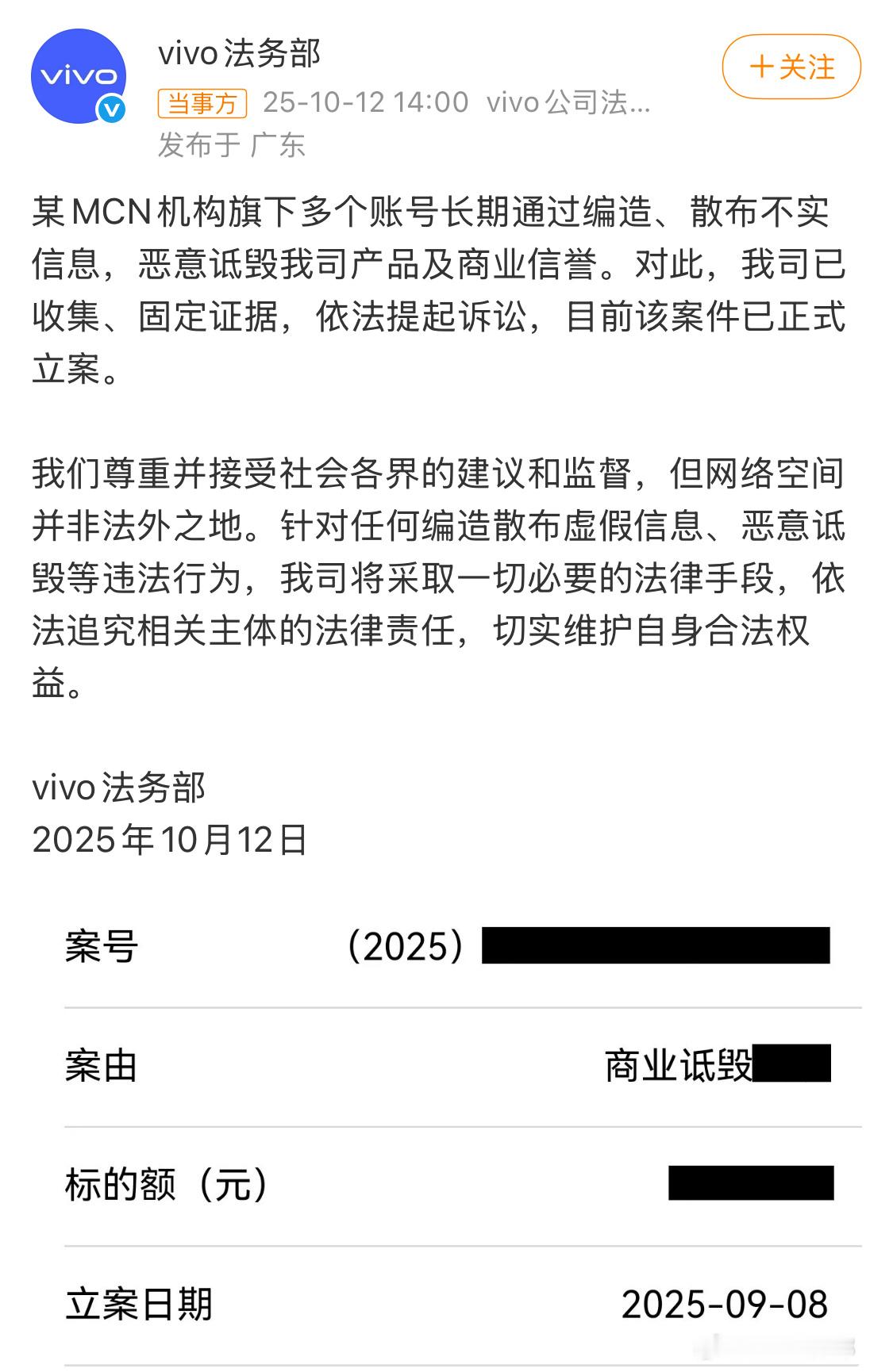 vivo起诉某MCN诋毁索赔近千万蓝厂一直是岁月静好,只做自己,不参与舆论战,没