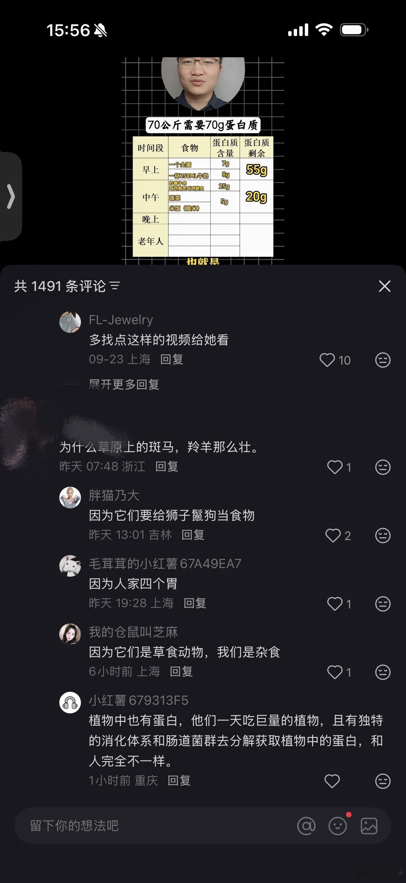 很多人日常饮食严重缺乏蛋白质还总认为吃肉不健康,好不容易看见一个科普的底下评论还好多杠的,我发现好多人是这样的,只要是对他好的一概不信