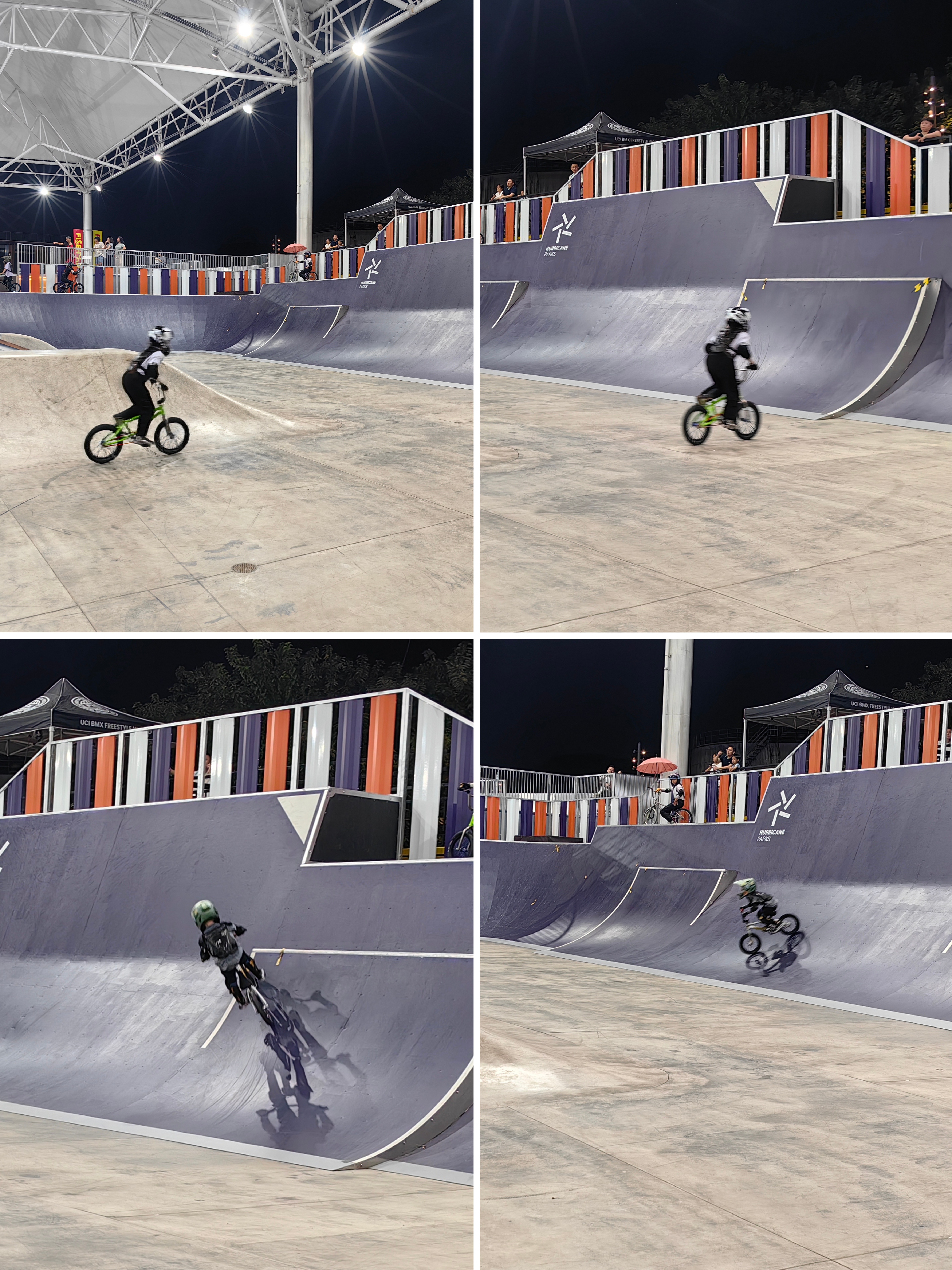 【成长记】我女儿骑着她的小电驴载我来江边遛弯儿,看到有人玩极限自行车,都是好小的小孩子,还有很多是女孩子她又走不动道了,就钉在这儿看得跃跃欲试了!