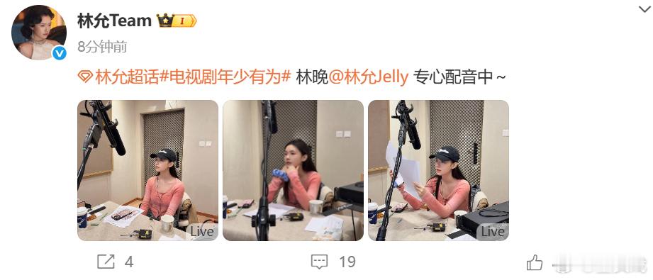 林允在配音林允晒配音照林允工作室晒出林允配音照片:林晚专心配音中~