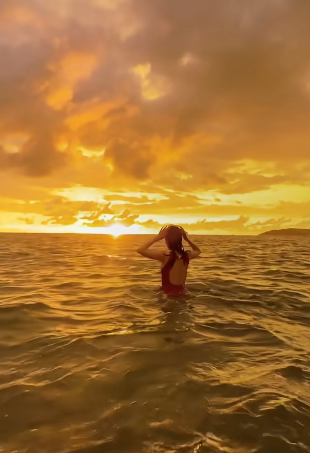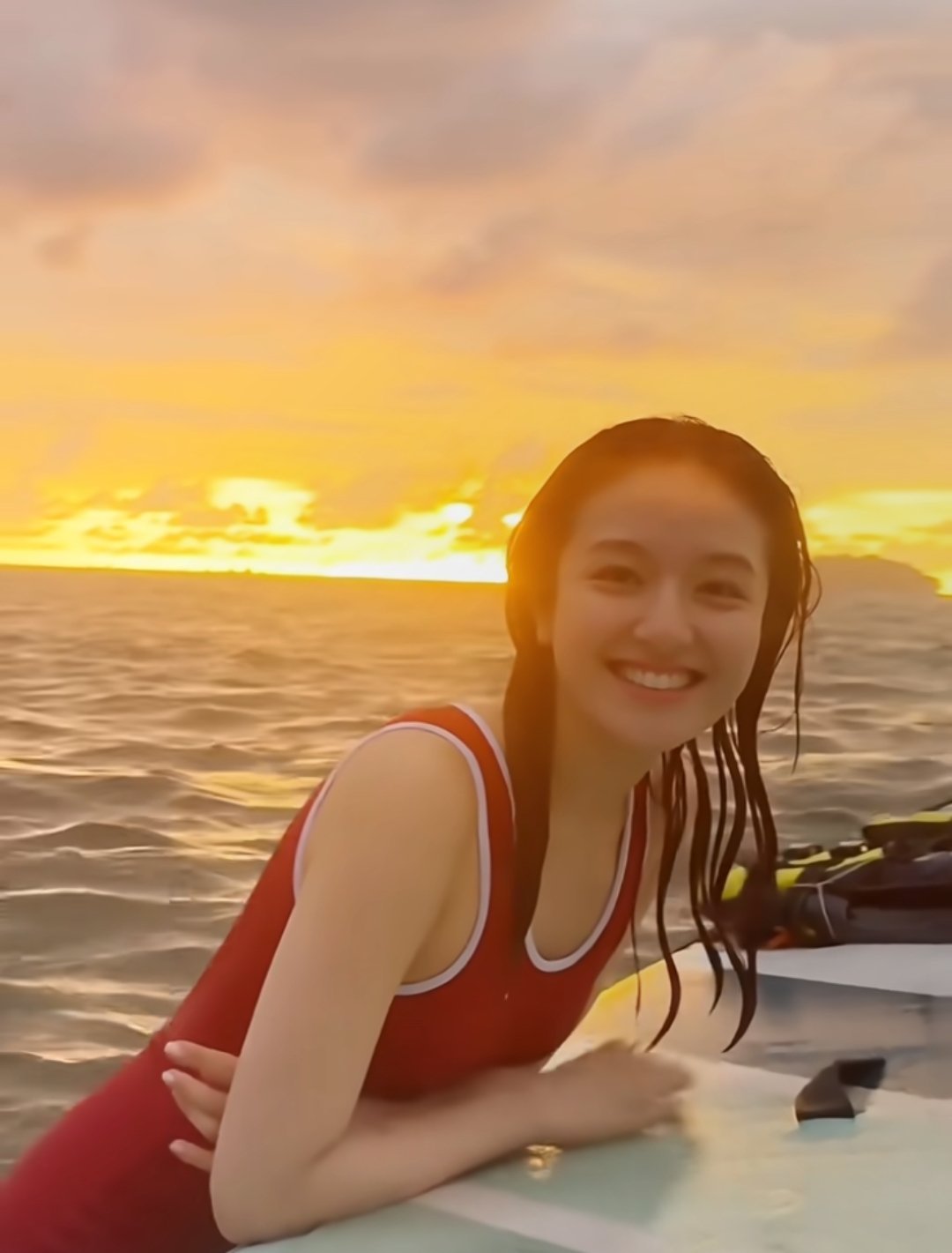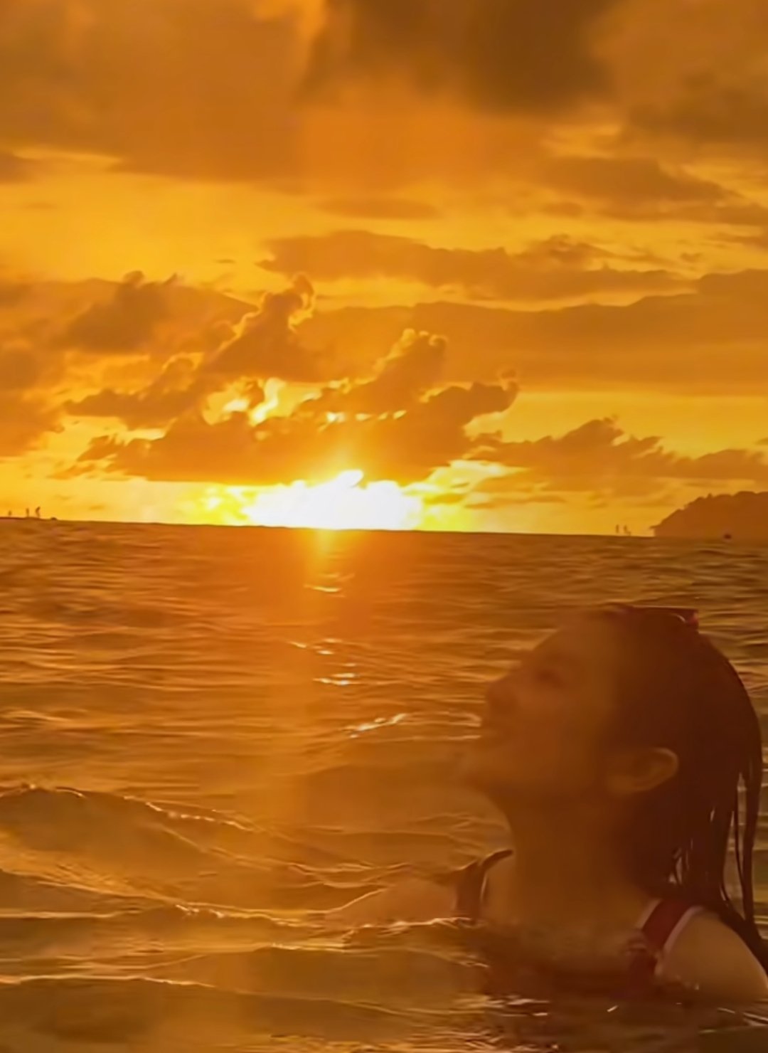 李兰迪分享自己国庆假期在马来西亚玩耍的场景,记录了夕阳和海水以及兰迪的笑容~