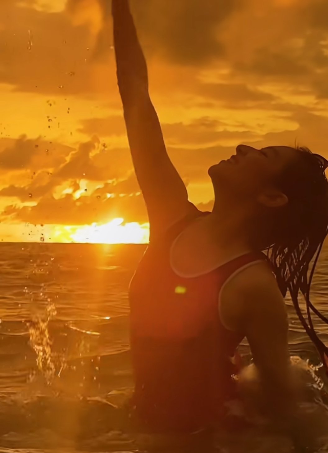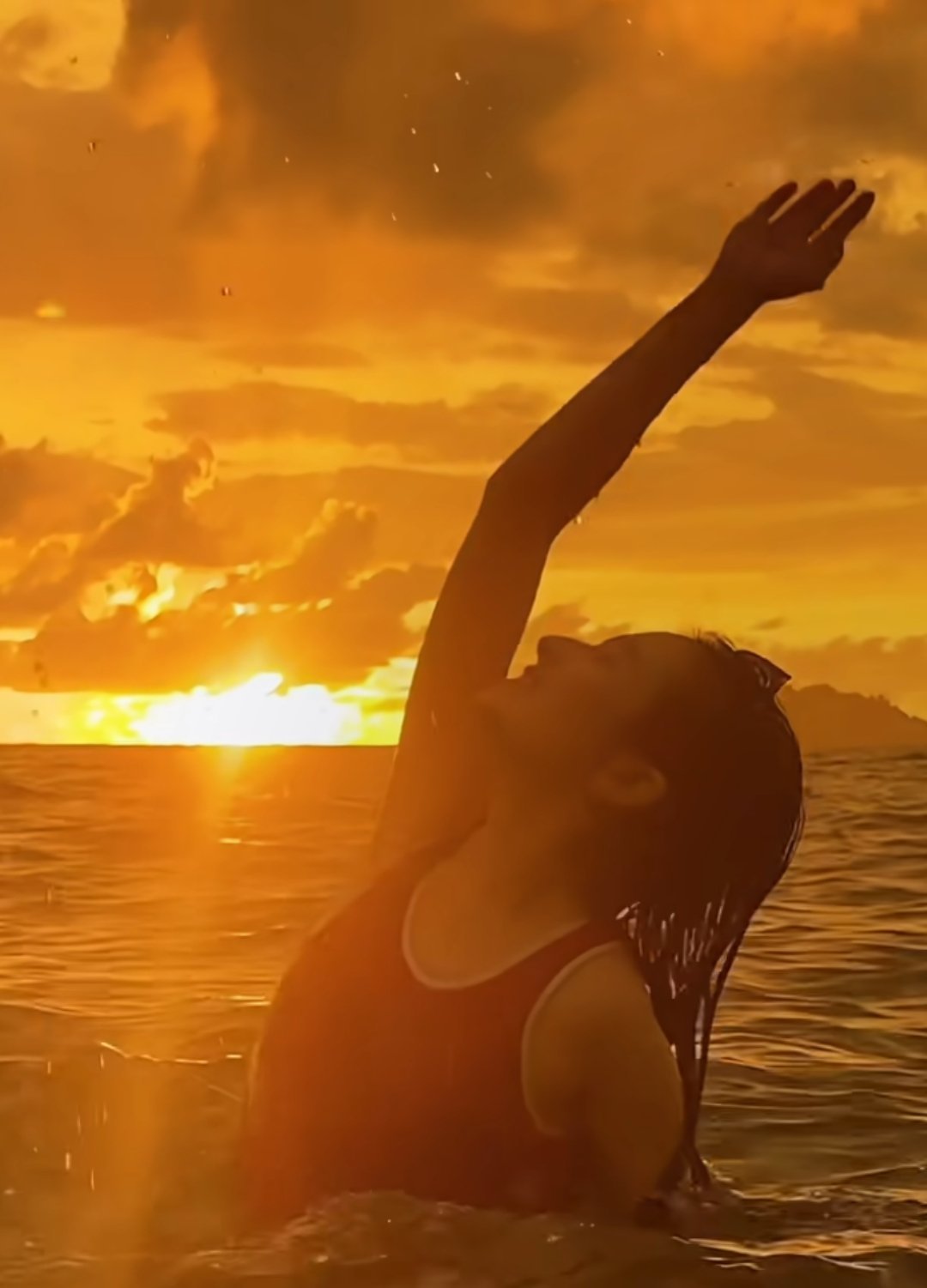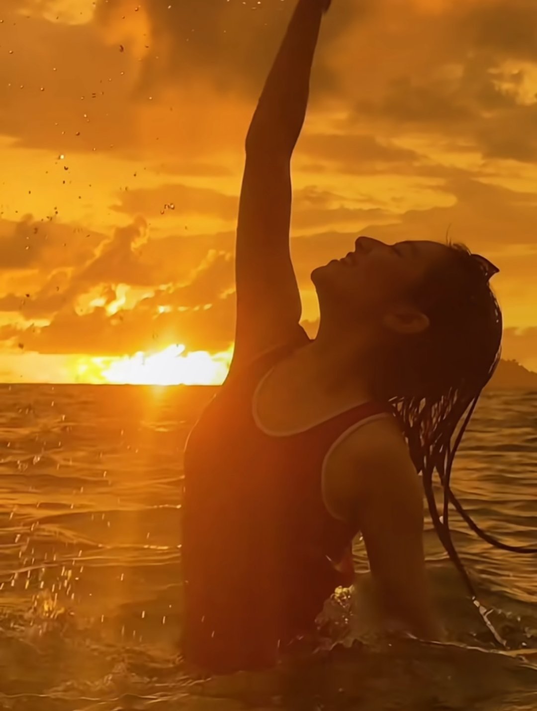 李兰迪分享自己国庆假期在马来西亚玩耍的场景,记录了夕阳和海水以及兰迪的笑容~