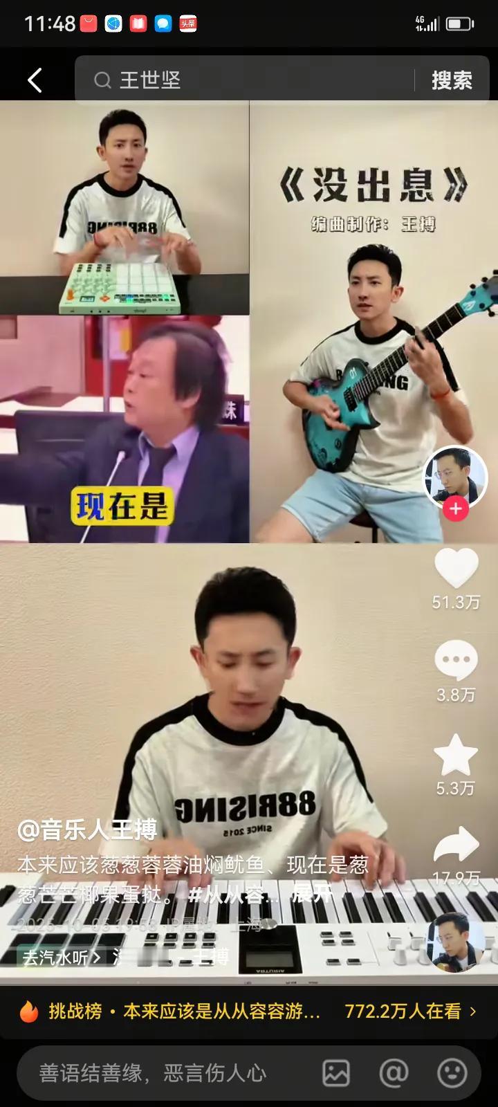 这阵子王世坚的《没出息》比较红火,他的那句“本来应该从从容容游刃有余,现在是匆匆忙忙连滚带爬”火出了圈子。音乐人制作了短视频并配上王世坚经典手势,在互联网广泛传播。 音乐人王搏比较年轻,看到王世坚经典手势并产生了灵感,制作了这首神曲。 音乐人王搏家境应该不错,有时间去创作,不用为一日三餐而担忧。 这个社会有时间有家庭的支持,才更有可能成功。每天为一日三餐而奋斗的人,大量花费时间去打工了,去赚钱了,根本不会往创作而努力了。 所以忙碌的打工人一般只会得到上班的工资,很难会有财务自由!