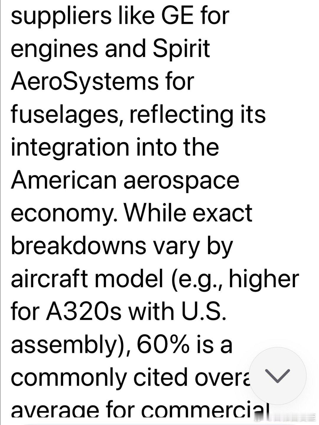 ✈️空客所需零部件,大约60%由美企制造,例如GE的发动机