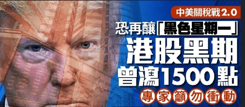 中美关系急剧转坏,新一轮关税战一触即发,上周五晚投资者率先抛售股票,港股夜期大插1314点,跌穿25000点大关,「黑期」更一度跌至24800点水平,较恒指收市价大幅低水约1500点,与中资科技股挂钩的中国金龙指数急插6.1%,跌幅仅次于4月「对等关税」时期,至于反映内地股市走势的富时A50期指上周五夜盘亦急挫超过4%。面对局势变化,港股、内地A股以至亚洲各国股市,今天(13日)均有机会出现震荡,至于会否重现今年4月「对等关税」时期先急跌后V弹的走势,分析指恐慌情绪未必如当时大,但往后波动或将加剧,股民宜先观察再调整投资组合。