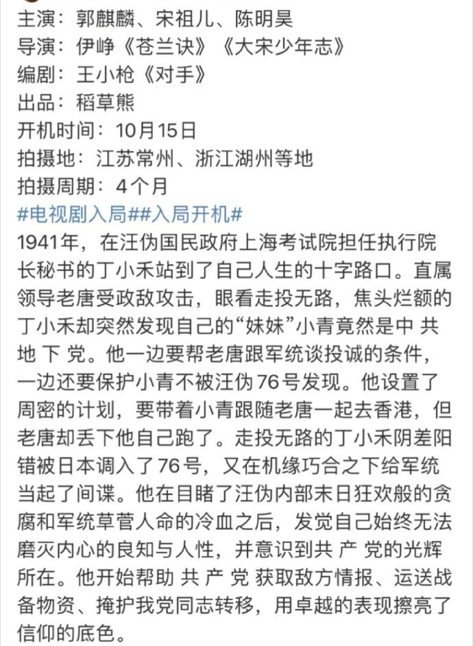 郭麒麟宋祖儿新剧演兄妹郭麒麟宋祖儿入局1015天津开机