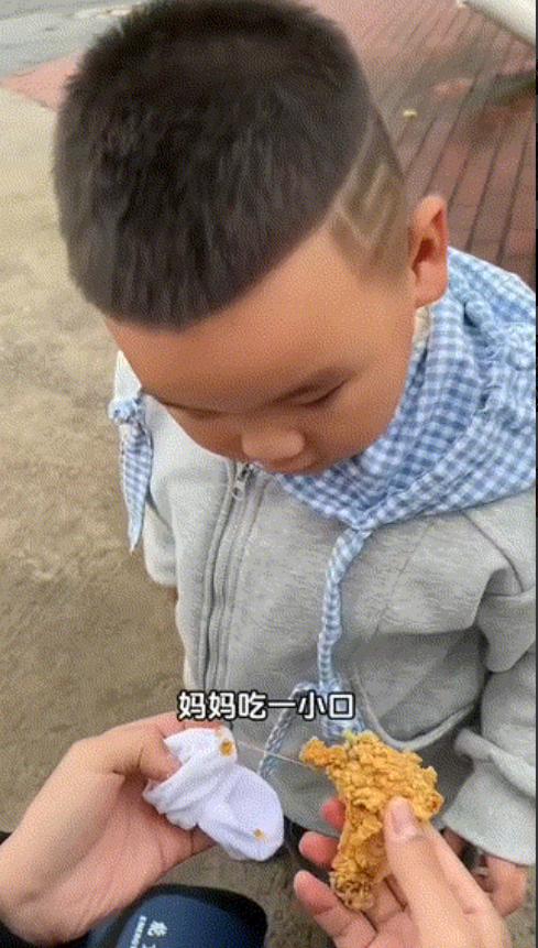 夫妻俩去接三岁儿子幼儿园放学,儿子看见爸妈后立马就将书包放地上,夫妻俩还以为儿子受委屈了,没想到儿子竟然从里面掏出一只袜子! 爸爸见状,蹲下身来问孩子怎么把袜子脱了,一边说一边伸手去摸孩子的裤腿。 果然,孩子一只脚光着,另一只脚还穿着袜子,显然是把一只袜子脱下来塞进了书包。 孩子把拿出来的袜子递给爸爸,爸爸看这袜子鼓鼓的,问里面装了什么,孩子兴奋地开口了,说袜子里有鸡腿。 爸爸愣了一下,慢慢地把袜子取下,里面真的裹着一个脆皮鸡腿,还带有一点温热。 鸡腿被拿出来的时候,孩子的眼睛一直盯着鸡腿,咽了咽口水说,这是幼儿园吃午饭的时候,老师发的,他想到妈妈也爱吃,就把鸡腿装到了袜子里,又放进书包。 说着话,孩子将爸爸手里的鸡腿推向妈妈,嘴里念叨着妈妈爱吃,让妈妈先吃。 爸爸看孩子这模样,笑着把鸡腿接过来,递给孩子妈妈,还跟她说,咱儿子特意留的,你必须先吃。 妈妈没在意袜子残留的味道,咬了一口,爸爸笑着说这都是孩子满满的爱。 等妈妈吃完一口,爸爸又把鸡腿递给孩子,孩子咬了一小口,又让爸爸吃,爸爸和孩子说一人一口轮流吃,只不过爸爸每次都只吃了一点点。 一家三口就这么你一口我一口,在幼儿园门口把这只从袜子里掏出来的鸡腿分着吃完了。 旁人看着这一幕,可能会觉得好笑,可是孩子这么小的年纪,能在吃到喜欢的鸡腿时,先想着留一部分给妈妈,这份心意有多难得。 很多时候,家长养孩子,盼的从来不是孩子将来能有多大的成就,而是孩子心里能装着家人,能主动分享自己喜欢的东西。 就像这次,孩子明明自己也馋得直流口水,却还是把鸡腿藏在袜子里带回家,就为了让妈妈也尝尝,这份简单又纯粹的分享,就是养孩子最真实的成就感。 仔细想想,这样的小事在生活里很常见,可正是这些小事,藏着最实在的幸福。 对这家人来说,幸福不是顿顿山珍海味,也不是什么贵重礼物,就是孩子惦记着妈妈的心意。 是一家三口分吃一只鸡腿时的笑声,是孩子眼里藏不住的期待,也是父母心里满满的暖意。