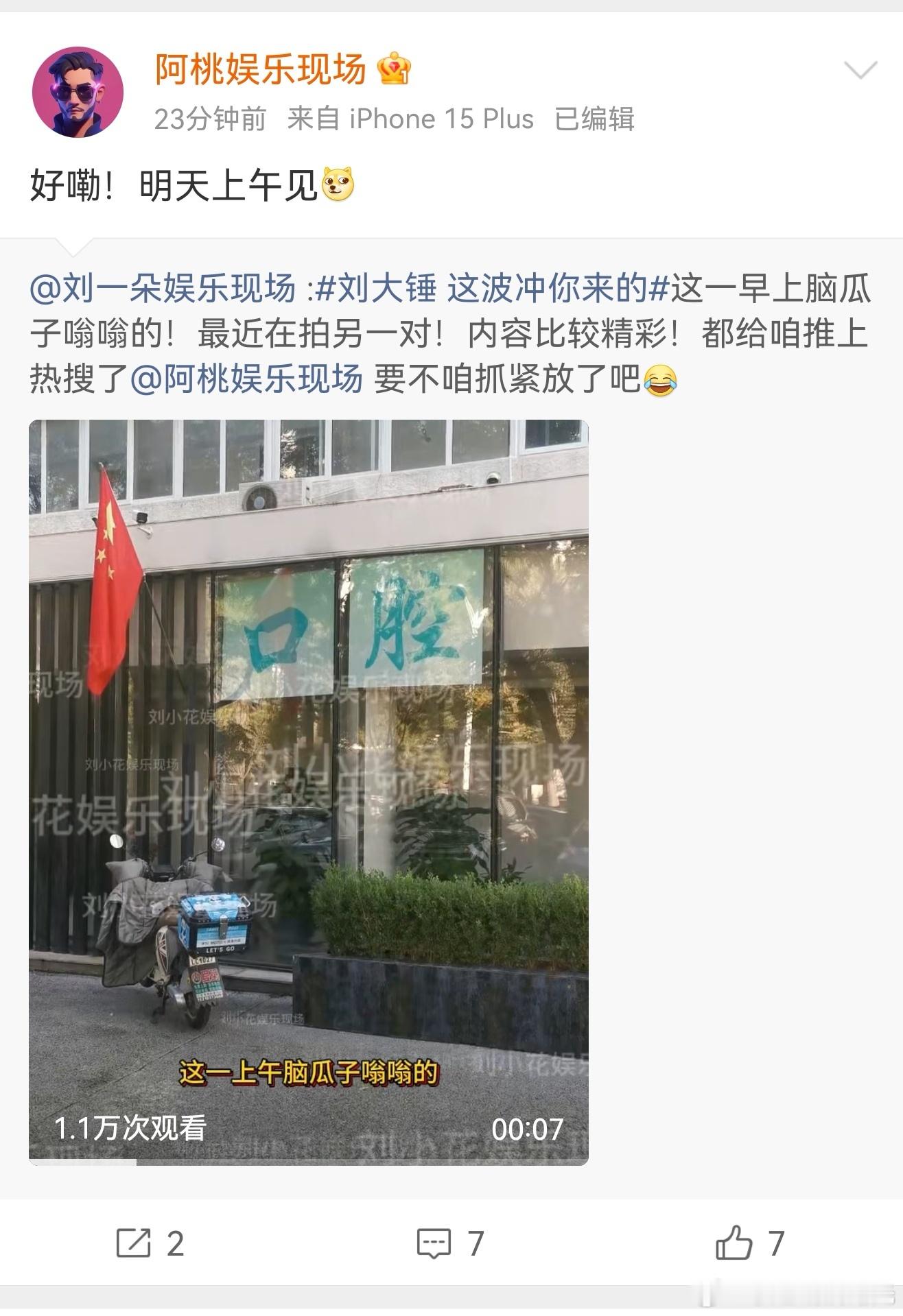 刘大锤明天曝另一对刘大锤预告另一对明天上午又有瓜吃了,刘大锤要曝谁呢?十一刷到