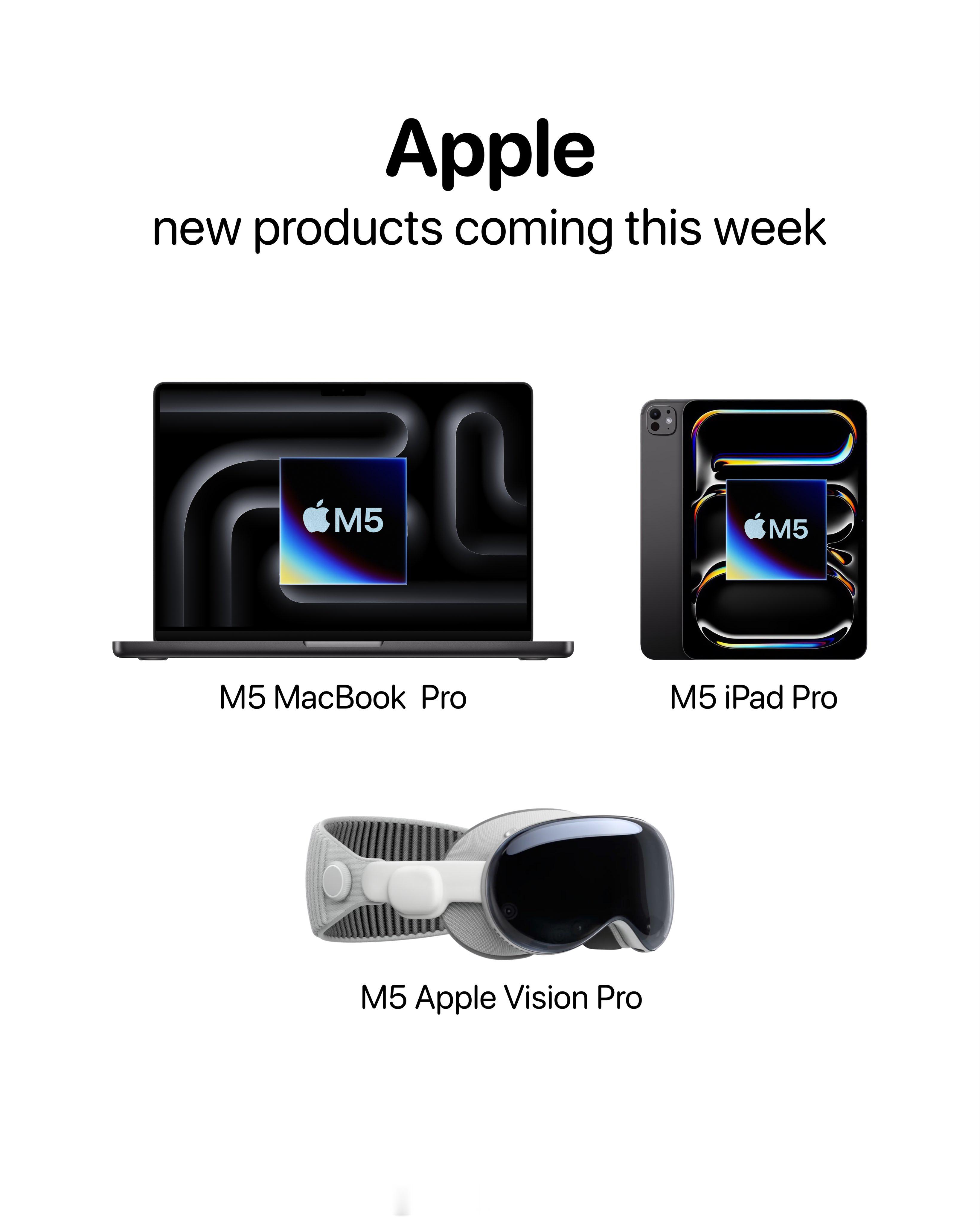 苹果很可能在本周推出新款 M5 iPad Pro、M5 MacBook Pro 和 M5 Apple Vision Pro!