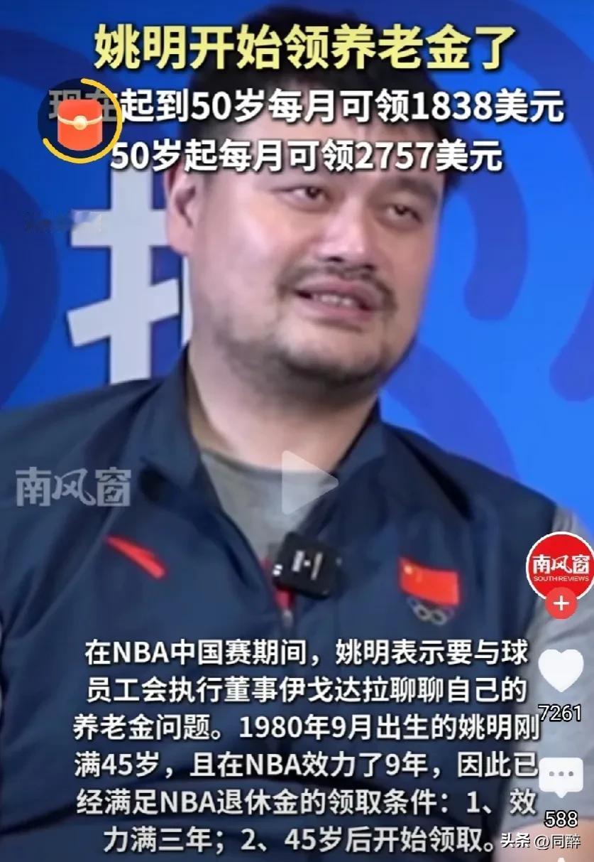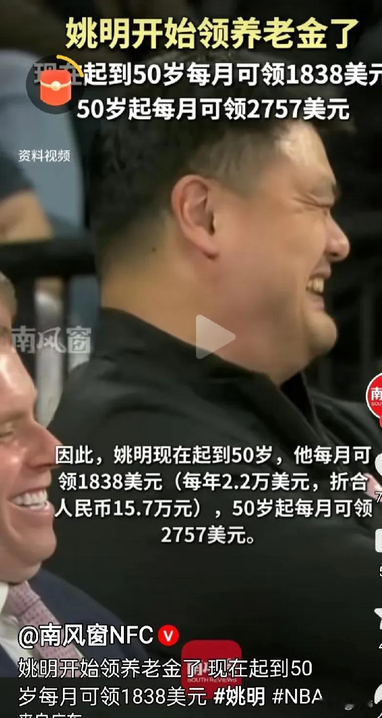 幸福莫过NBA,不但打球时薪酬超级棒,即便是在一个球员退役后,但凡他在NBA效力三年以上,到45岁时就可以领取丰厚的养老金。 以姚明为例,他1980年出生,如今刚到45岁,按NBA工会条例,姚明从现在起到50岁,每月可领1838美元(近1.5万人民币),这份退休金相交国内平均退休金水平已是高不可攀。到50岁时,他每月养老金将增加到每月2757美元(折合人民币近1.97万元)。 除了姚明,能在NBA领取退休金的中国球员还有以下三位: 易建联和王治郅效力5年,50岁后每月可领1531美元(折合1.2万人民币),每年约领14.4万人民币; 巴特尔在NBA效力3年,50岁时每月也能领取918美元(折合6550元人民币),这在国内也算高段位退休金了。