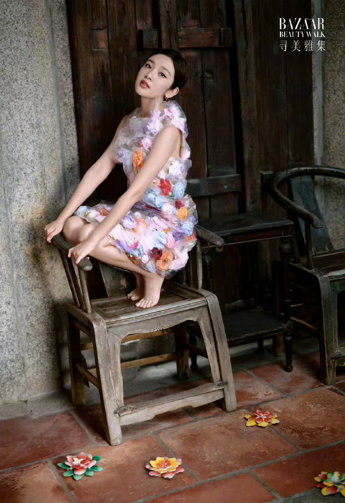 寻美雅集BazaarBeautyWalk唐艺昕把花穿在身上海上花 唐艺昕时尚芭莎大片释出,取景厦门海边,借花漾造型解读生活里的美好~