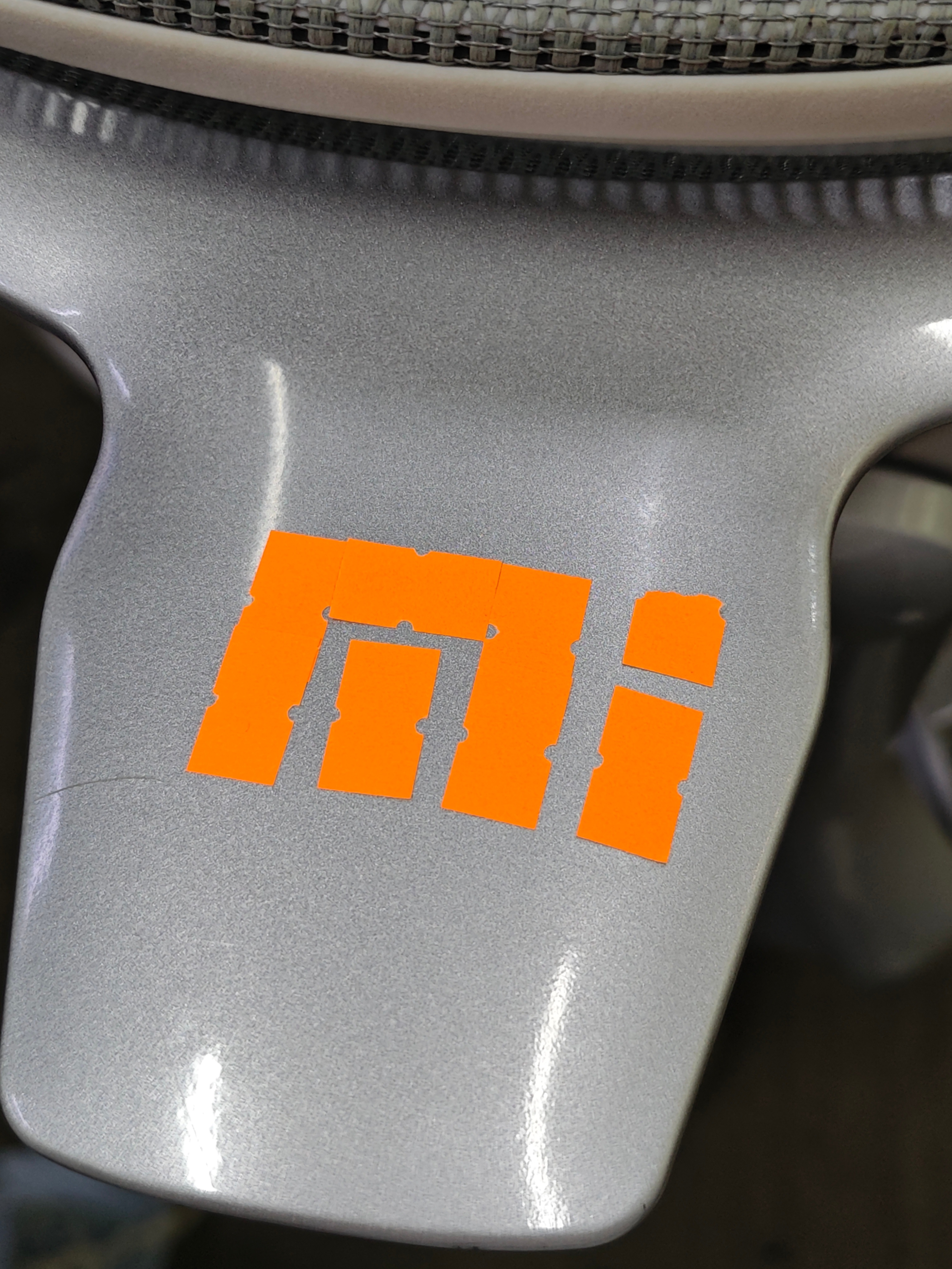 同事是一个米粉,她用标签纸贴了一个小米Logo,小米什么时候出一个电竞椅,办公室上班族太需要了