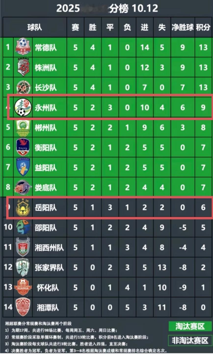 湘超里面的永州队和岳阳队到底是怎么样的存在? 1、永州:目前,积分榜高居第四,是四支不败的球队当中的一支,上一轮更是大胜邵阳。可它目前击败的都是降级区的球队,实力到底如何还是成疑。 2、岳阳:目前,积分榜排名第9,但它是除了长沙之外失球数最少的球队,可现在岳阳也没有碰过四大强队,防守功力到底如何,也有待检验? 目前,湘超才打了5轮比赛,还有很多未知。像苏超一样,刚开始的淮安也是势头很猛,谁能想到它最后几轮为了出线搞的焦头烂额。就比如现在的衡阳、郴州,万万大意不得!