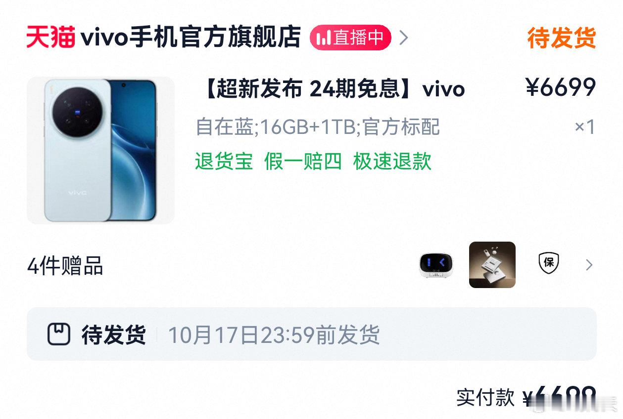 vivo X300价格下单了