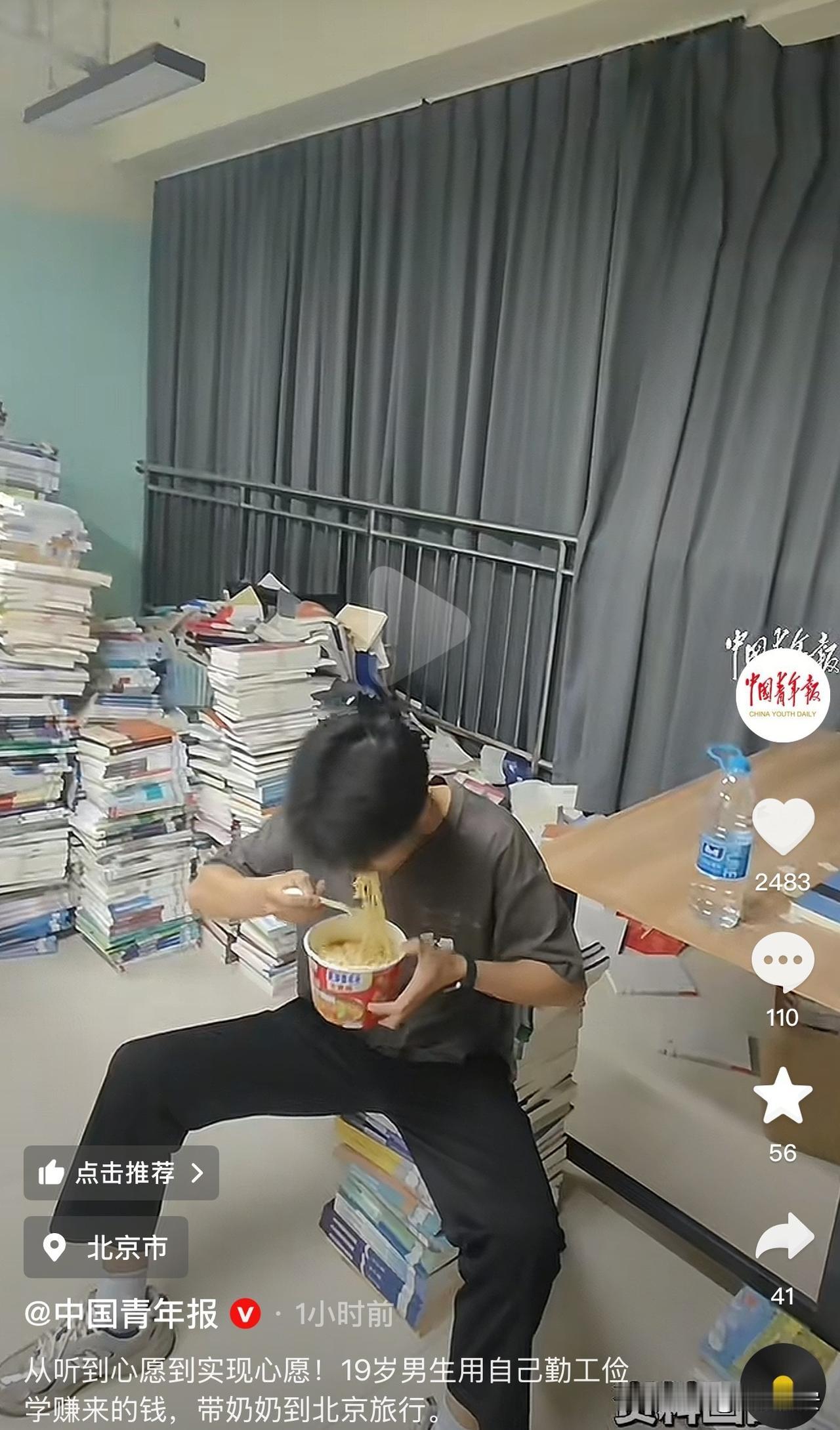 太孝顺了!近日,一个19岁的大学生用勤工俭学的钱,带83岁的奶奶来北京旅游,这事真是狠狠戳中我了。 当孙子了解到奶奶心中一直有一个“北京梦”后,他开始利用课余时间勤工俭学,他想攒钱带奶奶亲眼看一看北京天安门。 从今年2月份开始兼职,终于在国庆期间攒够了钱。 他带着奶奶第一次坐飞机,第一次爬长城、第一次在天安门看升旗,短短的几天,奶奶脸上的笑容就没有消失过。 有多少人的19岁还在享受青春,伸手朝父母要钱,可他却在为了老人的梦想,自己去兼职,用汗水和时间一点点攒出带奶奶旅游的钱。 老人年纪大了,可能没什么机会出远门,更别说去北京这样的大城市了。 他就用自己的行动,给了奶奶一段特别的回忆。在他的心中,奶奶的晚年幸福比自己吃顿美食,或者穿衣服都重要。 这也让我明白了,爱其实非常简单,就是在心里惦记着对方,然后对此付出行动。 我觉得咱们做晚辈的,真得像他多学习,多关心家里的老人。 别等他们年纪大了、走不动了,才想起来尽孝。趁着现在,多陪陪他们,带他们去看看没看过的风景,吃没吃过的美食。 说不定咱们一个小小的举动,就能让老人开心好久好久。