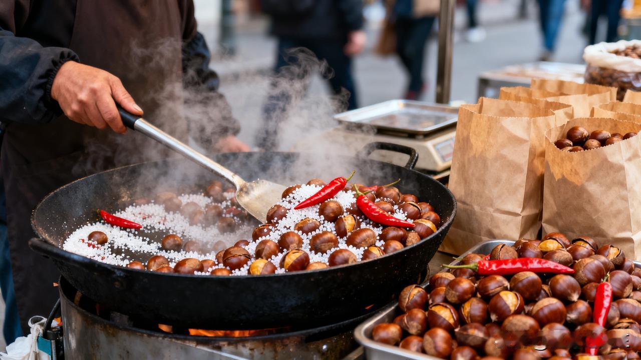 “蒸包子不放馅——有气没处撒”:画面会呈现厨房场景,蒸锅冒着白汽,掀开的蒸屉里摆着圆鼓鼓的空包子皮,旁边放着没开封的肉馅,还原“没放馅”的关键细节; “煮饺子破皮——露了馅”:聚焦燃气灶上的煮锅,锅里的水翻滚着,几个破皮的饺子浮在水面,馅料顺着裂口露出来,旁边还放着装熟饺子的盘子,贴近日常煮饺子的场景; “糖炒栗子放辣椒——又甜又辣”:展现街头或厨房的糖炒栗子锅,锅里混着栗子、糖粒和几个红辣椒,热气氤氲,旁边摆着盛好的栗子,突出“甜与辣”的反差搭配。