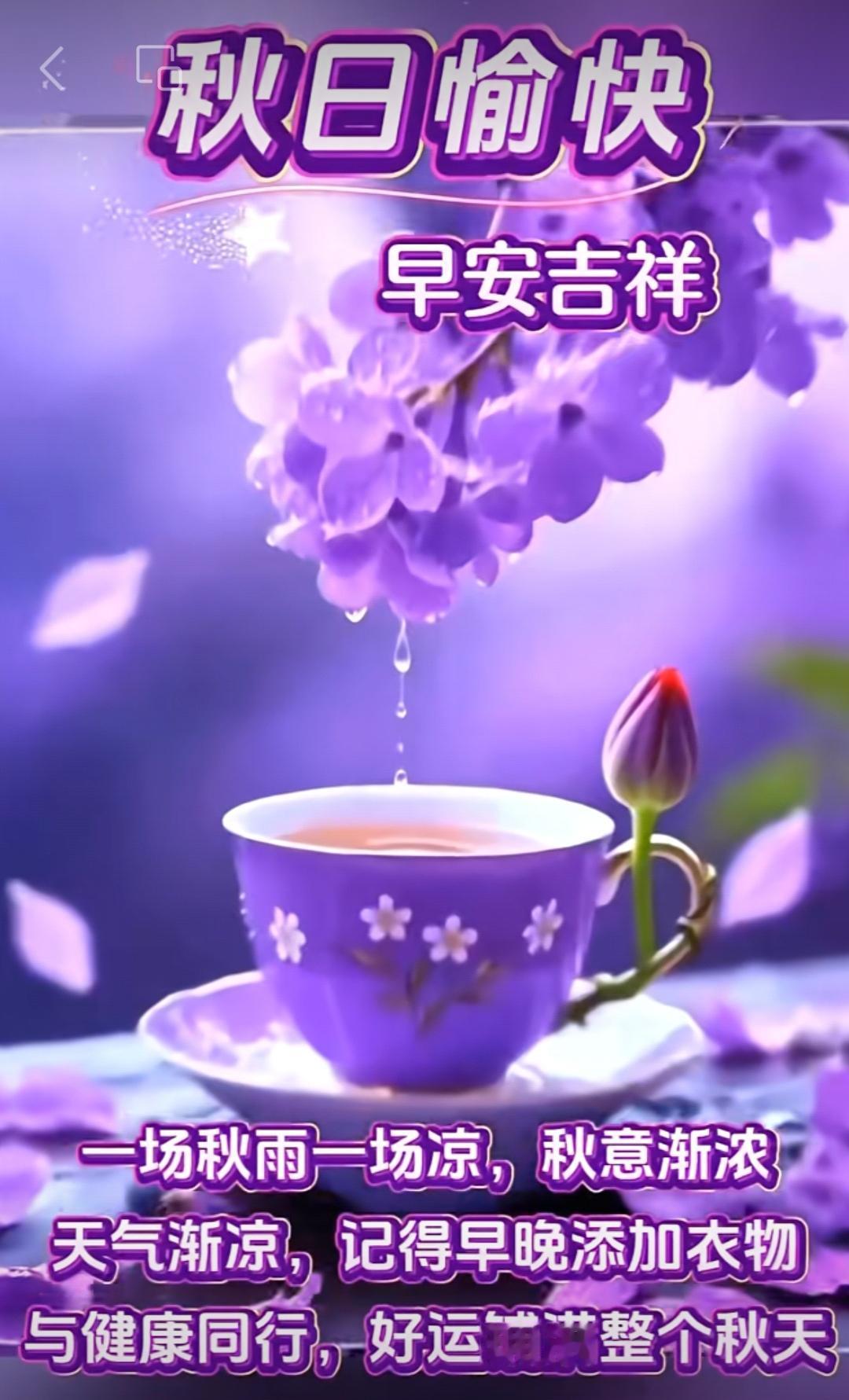 秋天迎來越涼, 鮮花越來越香, 善緣永遠不忘, 問候天天送上。 早上好![玫瑰]