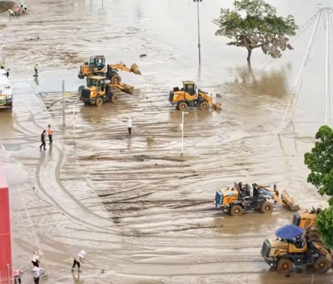 经历了半个月,广西南宁的洪水退去,一场硬仗又开始了,邕江两岸公园还有着半米厚的淤泥,各部门工作人员快速清理淤泥,有铲车速度还是很快的。 这些志愿者也是有工资领的。 南宁的水已经退了,百色也开始退水了,但还有一些地势问题,退水难,倒是没看见受灾物资供应短缺问题。