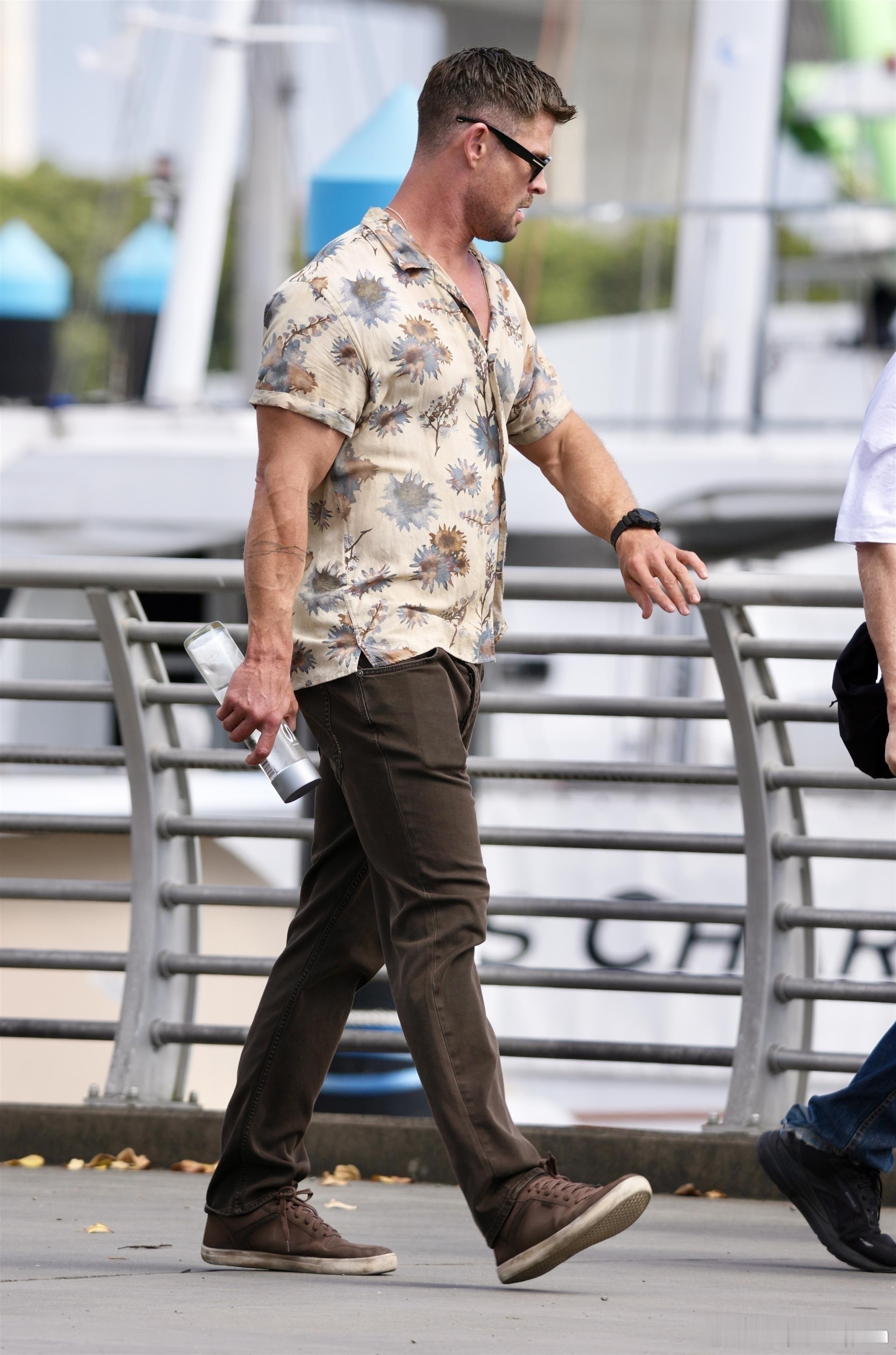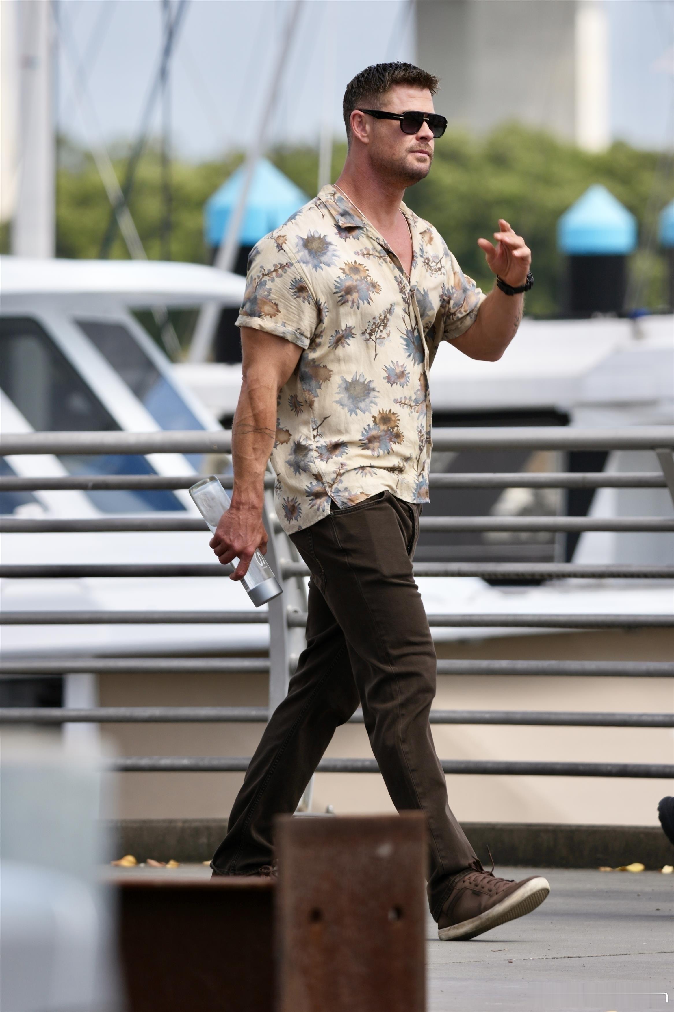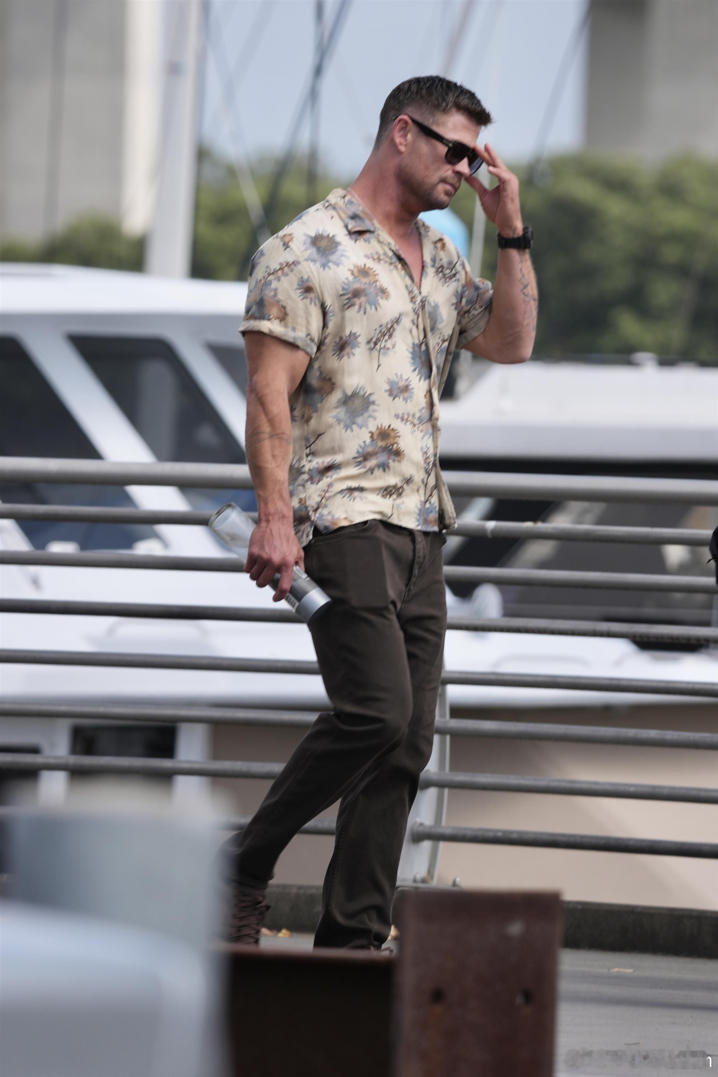 ChrisHemsworth克里斯海姆斯沃斯在布里斯班外出,前往新片《Subv
